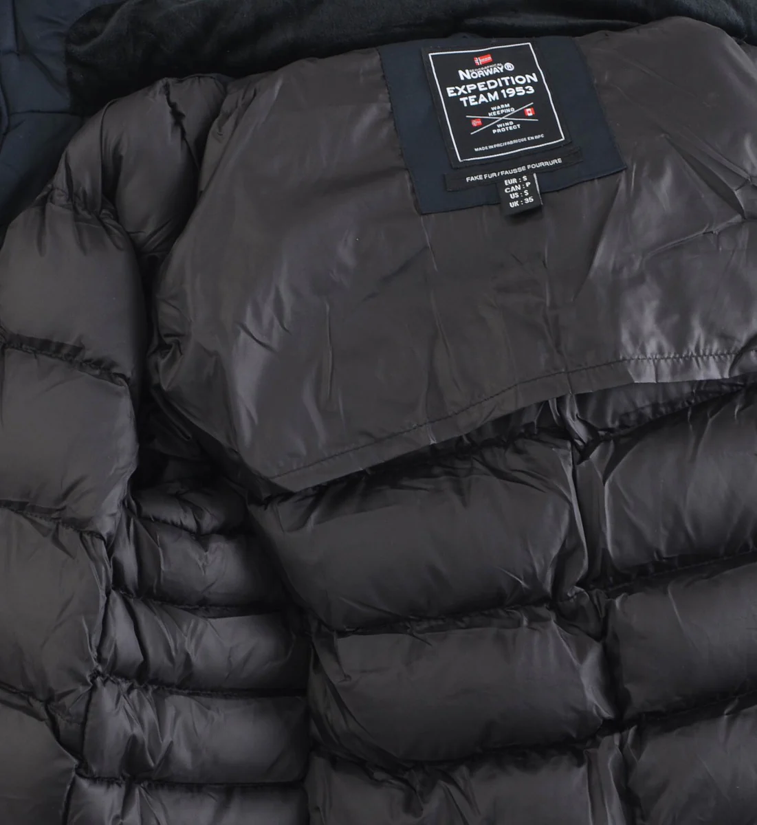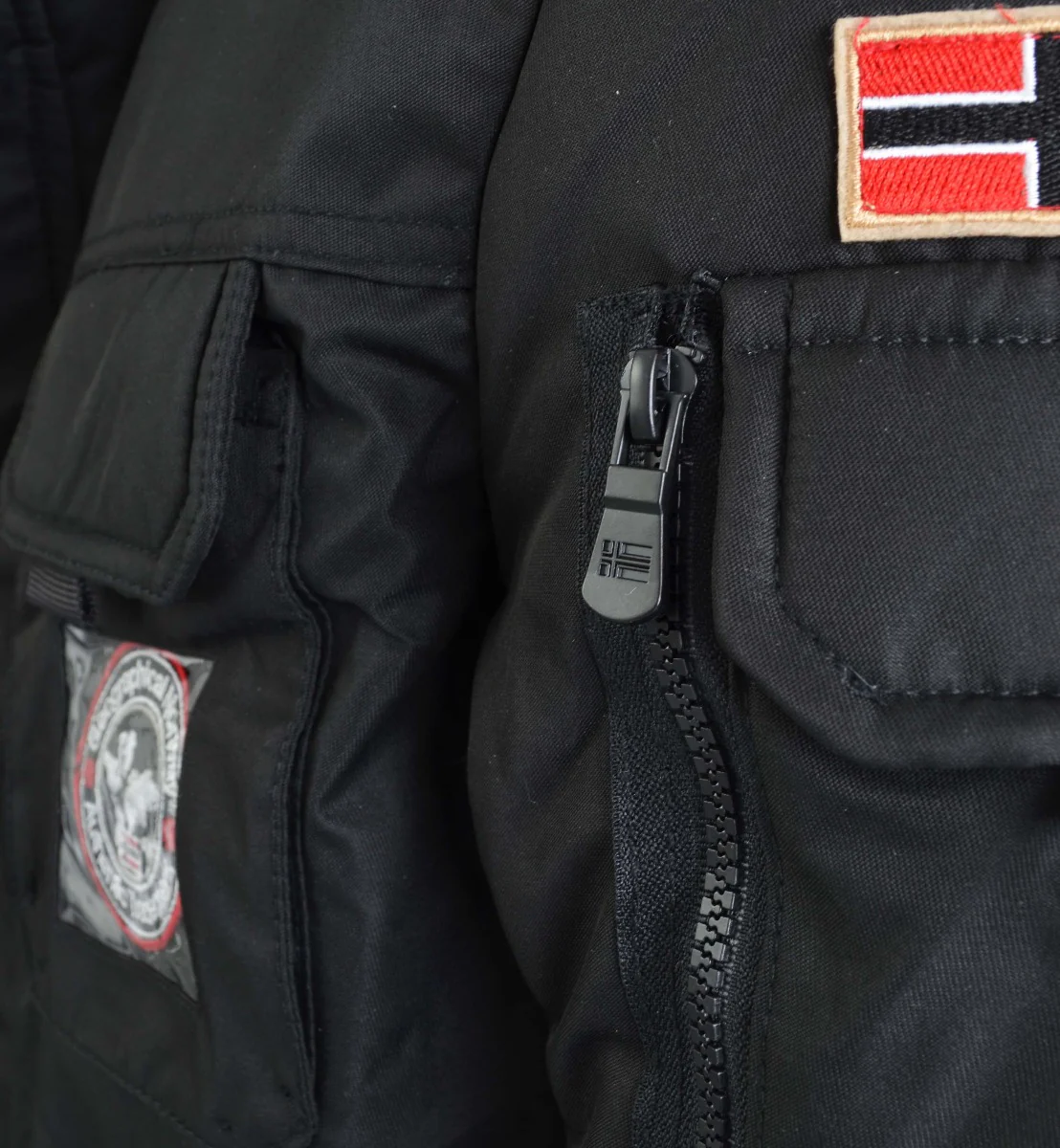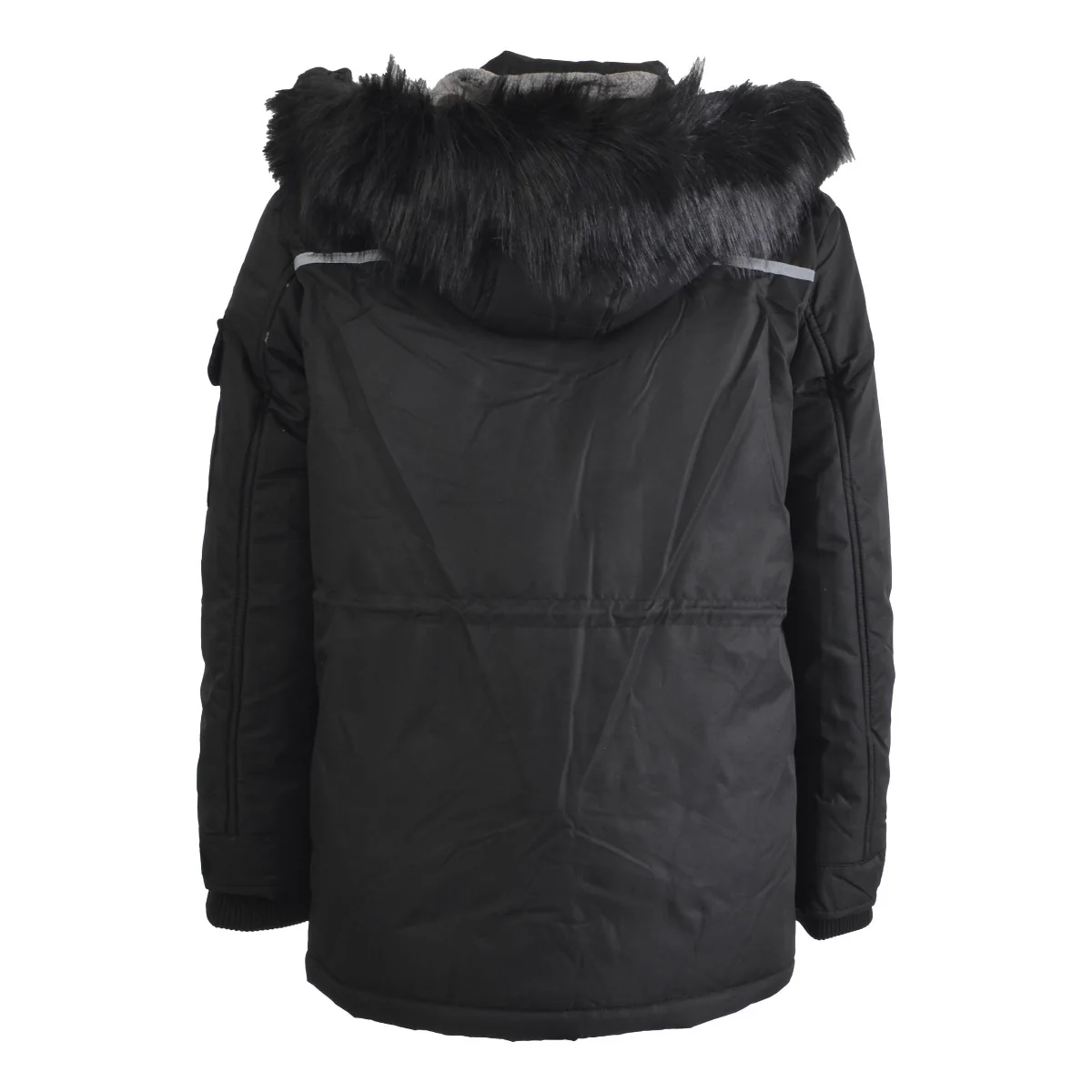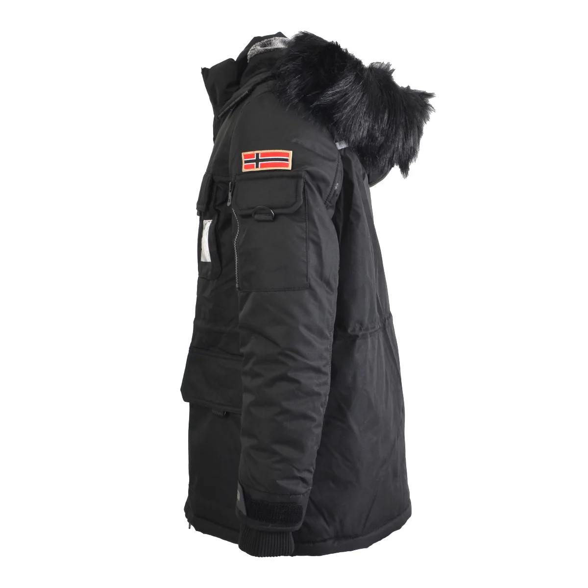 PARKA CON APERTURA CENTRALE CON CERNIERA FRONTALE E MOSCHETTONI NASCOSTI. CAPPUCCIO REGOLABILE CON FINTA PELLICCIA STACCABILE. RICAMO SUL PETTO, DISTINTIVI SULLA MANICA E CAPPUCCIO. 2 TASCHE SUL PETTO, 2 TASCHE, DAVANTI E 1 TASCA SULLA MANICA.