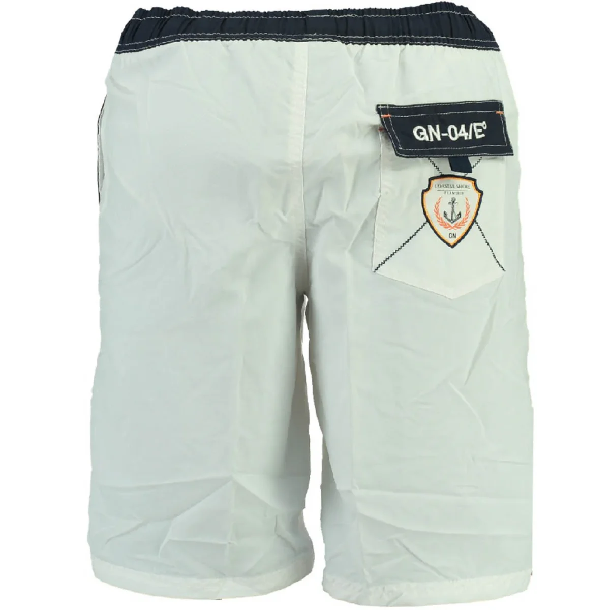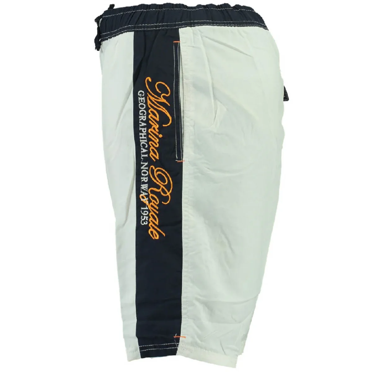 PANTALONCINI DA BAGNO CON COLORI A CONTRASTO, RICAMO E STEMMA RICAMATI DAVANTI. 1 TASCA RICAMATA SUL RETRO.