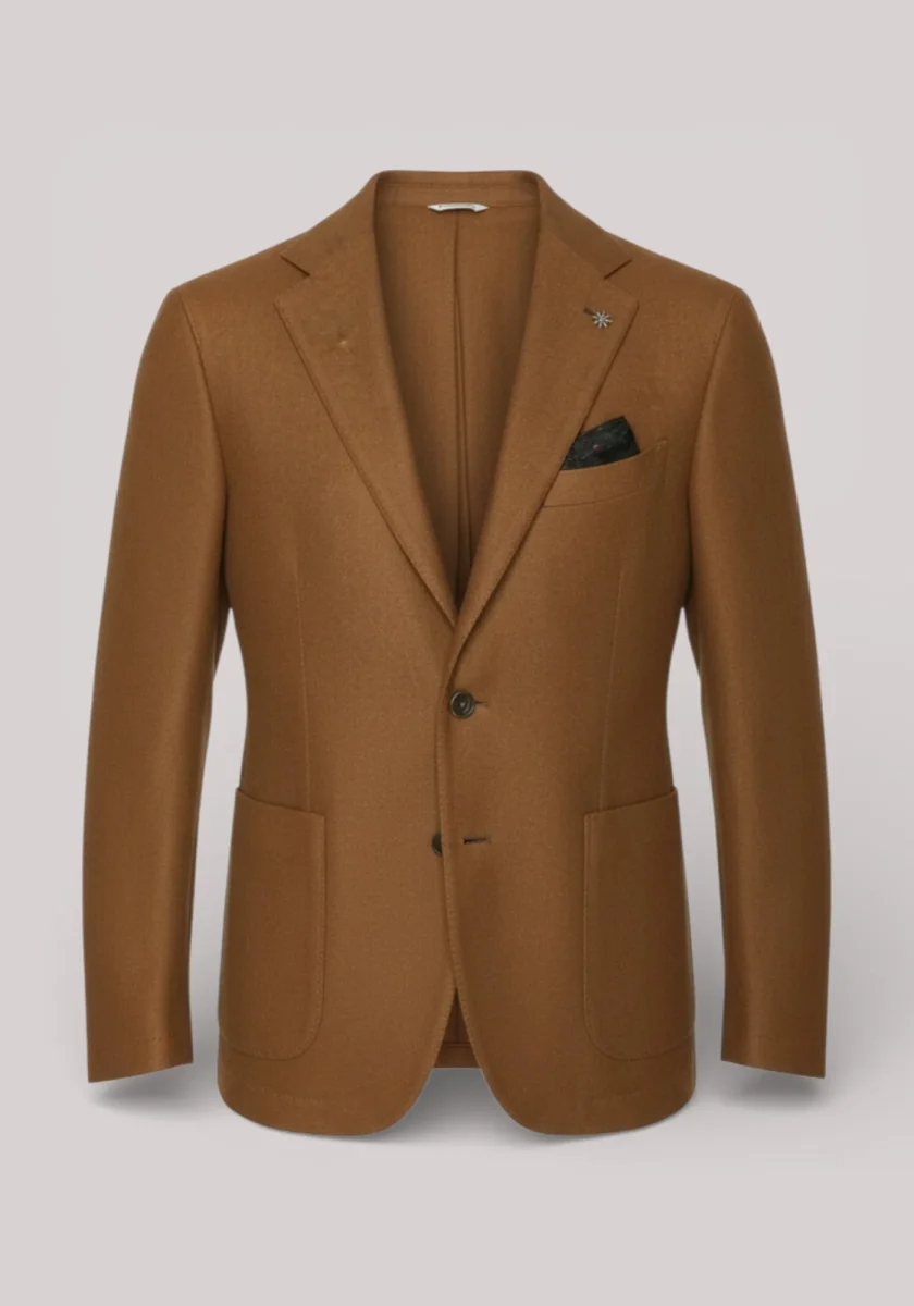 Classico blazer in tessuto gessato tono su tono con vestibilità regular fit, modello a 3 bottoni, spacchi laterali, tasce a toppa e completamente sfoderata.