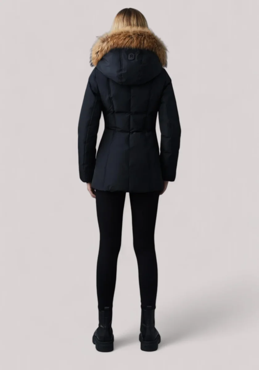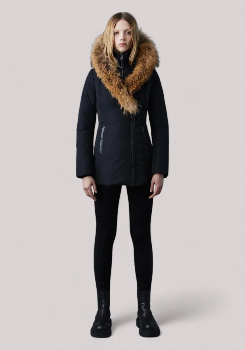 ADALI è un cappotto in piumino riciclato da donna con il nostro Signature Collar con rifiniture in pelliccia naturale e una chiusura a zip asimmetrica. Testato in laboratorio per proteggere con un rapporto peso-protezione, ha una pettorina interna con collo a costine, fermaglio del cappuccio nascosto e polsini antivento. Le tasche a filetto in pelle isolate, resistenti all’acqua, idrorepellenti e antivento aggiungono calore e protezione. Un capo invernale essenziale e di design, impreziosito da una sartoria attenta.