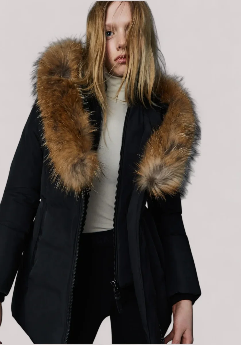 - Guscio: 100% poliestere. Combo 100% pelle di mucca. Fodera: 100% poliestere. Imbottitura: 90% piumino d’anatra, 10% piume. Pelliccia: 100% procione finlandese. Idrorepellente e resistente all’acqua.