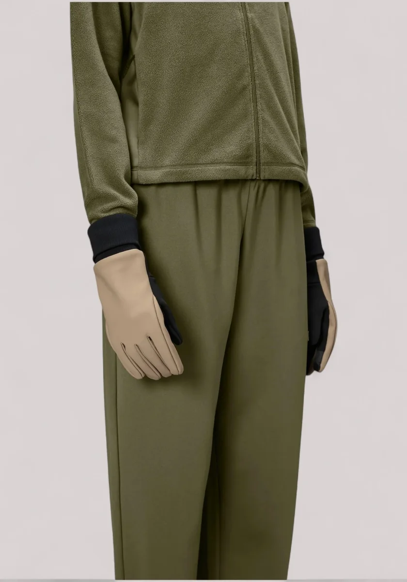I guanti sono un accessorio isolante con un’estetica essenziale, per tenere le mani calde e asciutte nei climi freddi e piovosi.