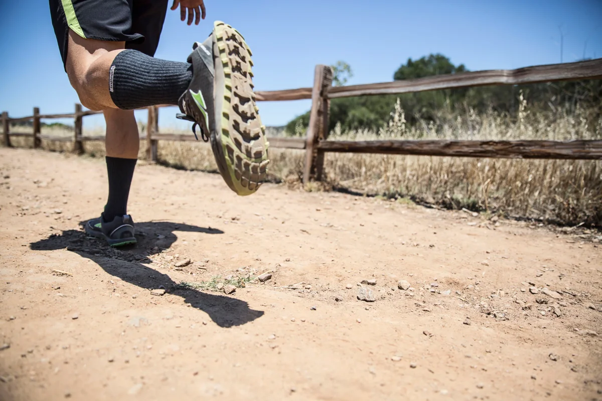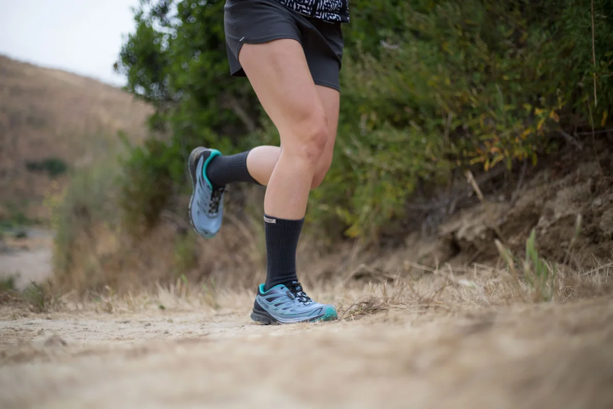 Protezione dai detriti: L’altezza “crew” e il doppio polsino elastico impediscono a fango, sabbia e sassolini di entrare nelle calze durante la corsa o l’escursionismo.