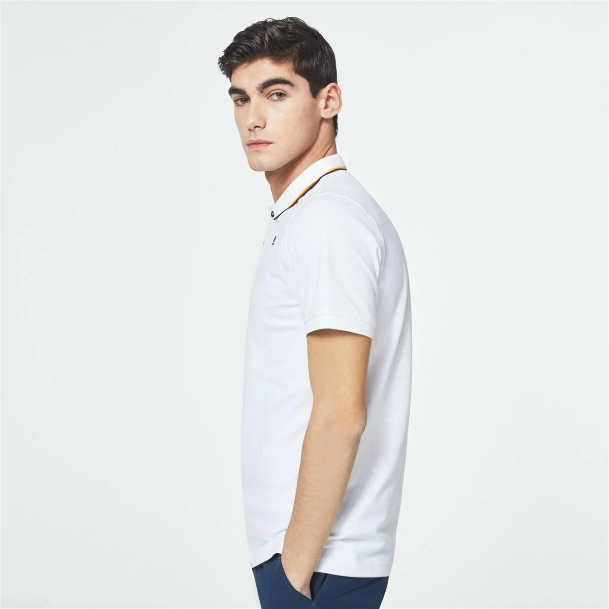 Polo K-Way Jude Stripes Slim Fit maglia manica corta uomo K0088D0 Polo da uomo manica corta a vestibilità attillata. Realizzata in piquet di cotone stretch. Si caratterizza per il bordo del collo rifinito con i colori tipici del brand e gli spacchi sui lati che assecondano i movimenti. – Colletto con bottoni in madreperla logati. Logo ricamato applicato sul petto.
