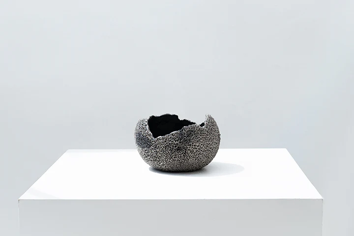 Vaso moderno di design in gres grigio e nero. La sua superficie ricorda una pietra pomice magmatica. La linea Kallirhoe prevede 4 diverse dimensioni e colorazioni, scopri anche Kallirhoe n1, n3 e n4! Questo particolarissimo vaso decorativo ricorda la trama di una pietra vulcanica, è in ceramica gres rivestita internamente con smalto satinato nero e cotto a 1220 ℃. Ogni articolo è fatto a mano quindi ci sono piccole differenze nella loro forma, dimensioni e colore che evidenziano il processo creativo.