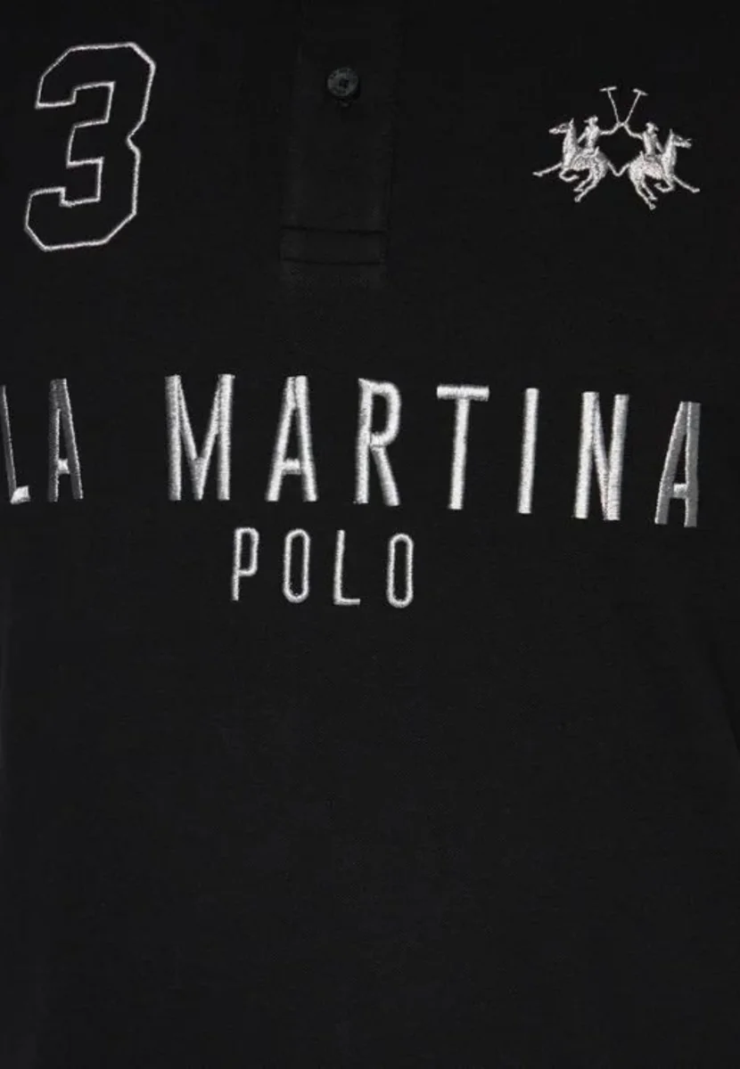 La Martina Polo Ricamo e Numero Logo Cotone Nero