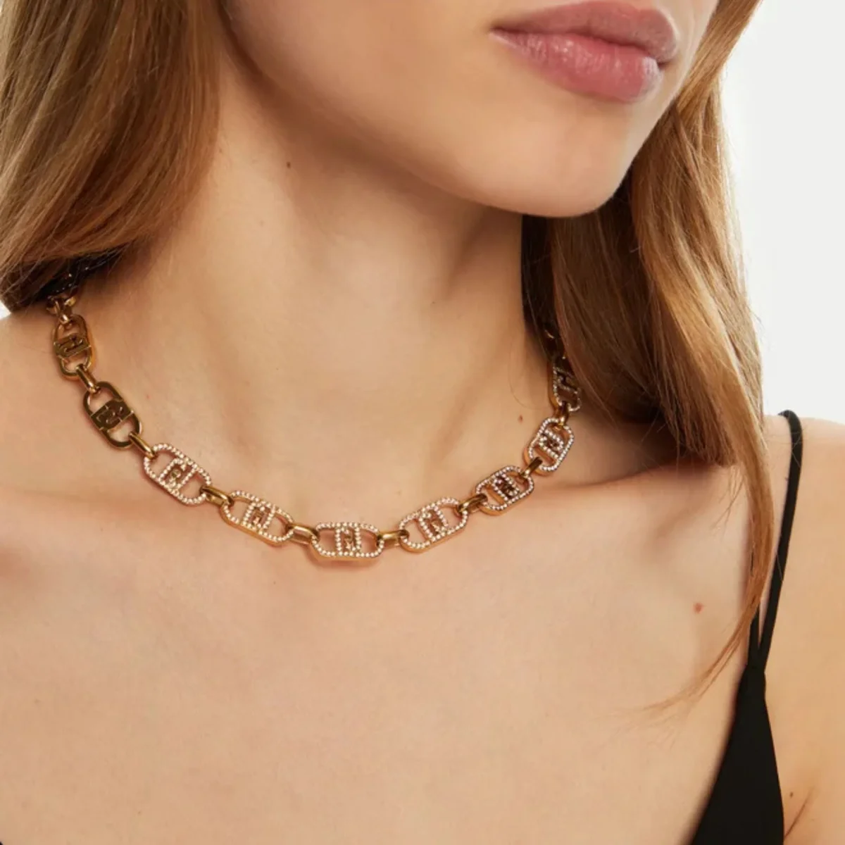 Liu Jo collana girocollo ORO acciaio inossidabile logo e strass 45 cm LJ2624 monogram