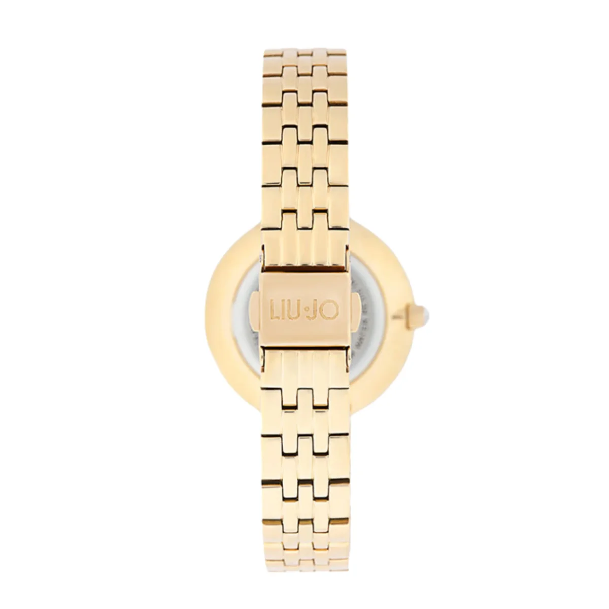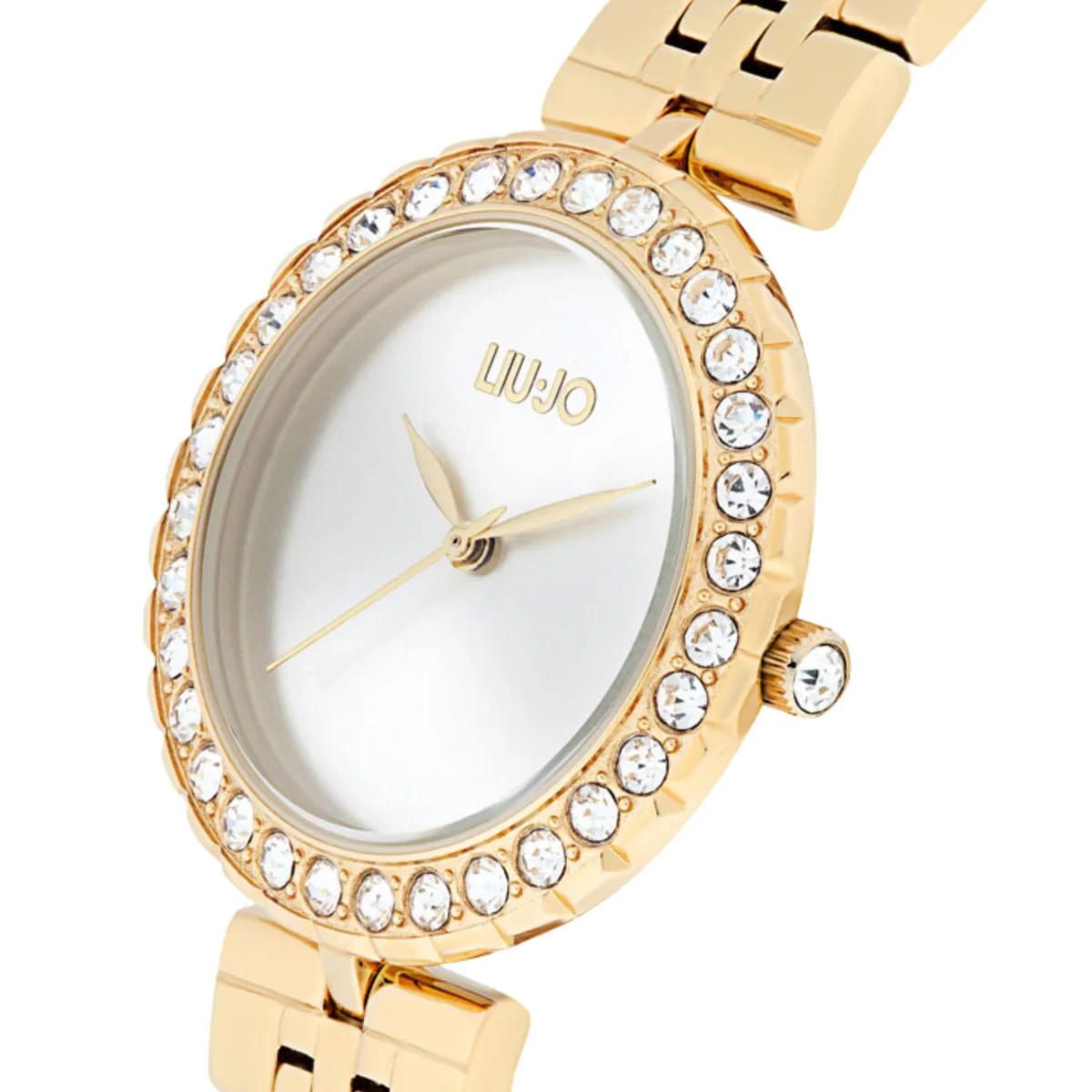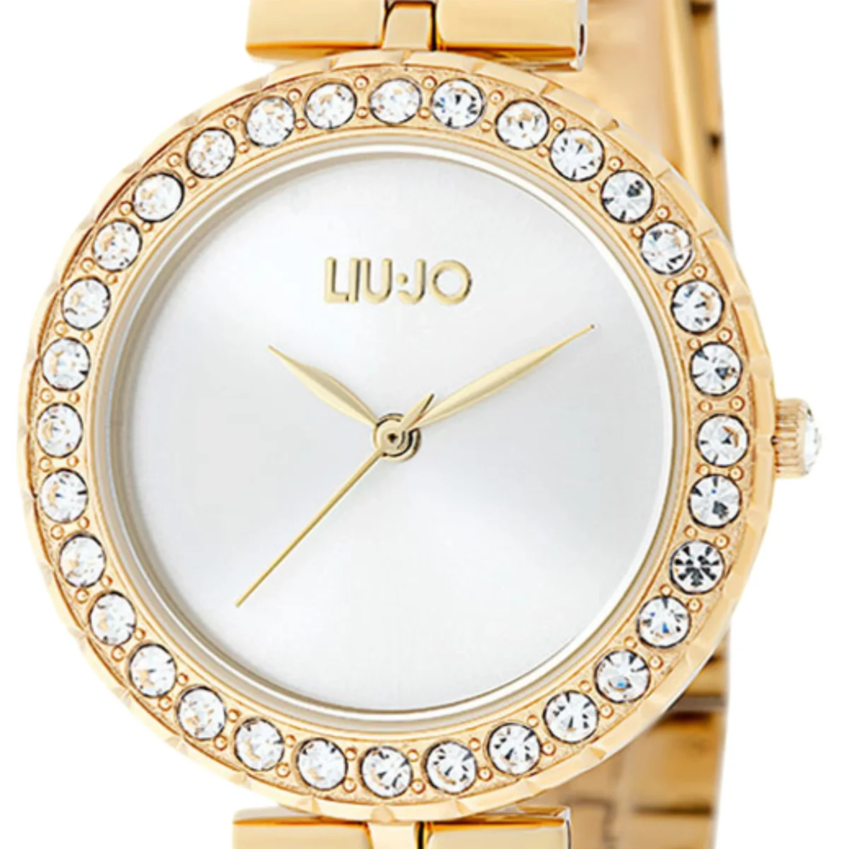 Orologio solo tempo da donna di Liu Jo della collezione Crystal Chic. Orologio con cassa in acciaio inossidabile di colore rose gold del diametro di 32 mm e quadrante di colore warm grey. Cinturino in acciaio inossidabile di colore oro rosa – argento. Vetro minerale, lunetta impreziosita con brillanti. La resistenza all’acqua è di 3 atm e il movimento è miyota cal. Vj21.