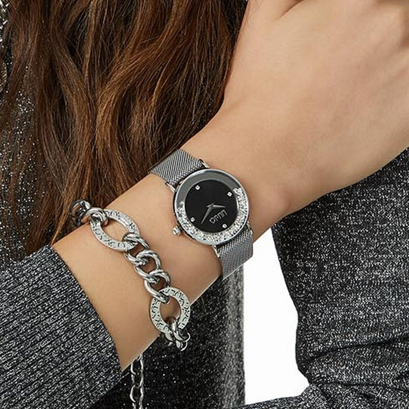 Orologio solo tempo da donna di liu jo della collezione dancing slim. Orologio con cassa in acciaio di forma rotonda del diametro di 36mm, display analogico e cinturino in acciaio. Larghezza ansa 18 mm. Orologio con resistenza all’acqua di 3 atm e movimento miyota cal. Vj20. La referenza è tlj1341