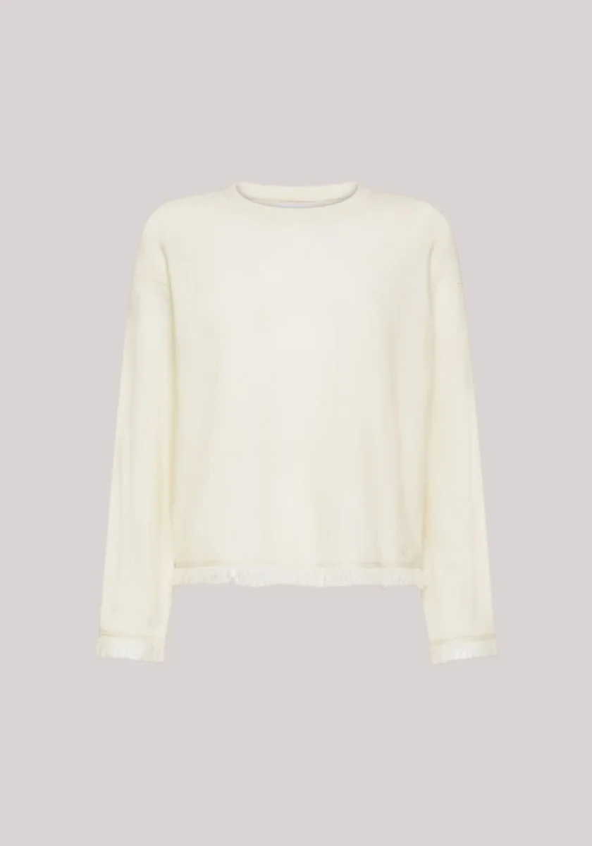 MAGLIA DONNA IN LANA E CASHMERE CON FRANGE BIANCO PANNA – SWEATER FRINGES L/S K45235 31