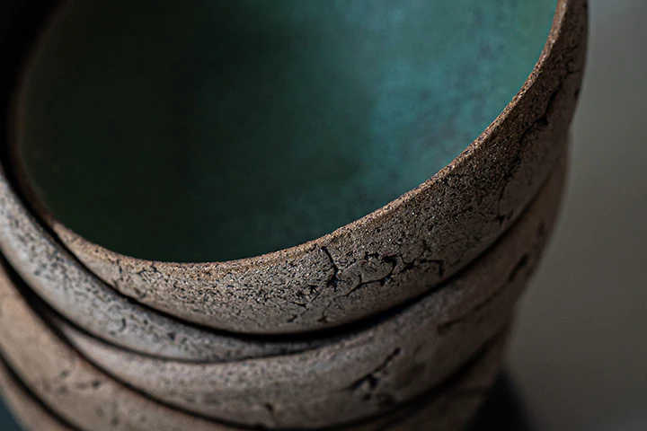 Ciotola grande in ceramica gres cotta a 1220 ℃. Il design grezzo ci ricorda i magnifici paesaggi della penisola del Mani, nel Peloponneso. La superficie esterna della ciotola riporta crepe simili a quelle di un terreno arido e internamente è colorata in verde smeraldo. La serie “Mani Bowl” ha diverse varianti in dimensioni e colorazioni, scopri anche Mani Bowl 1, N2, N3 grey, e N4. Ogni articolo è fatto a mano quindi ci sono piccole differenze nella loro forma, dimensioni e colore che evidenziano il processo creativo.