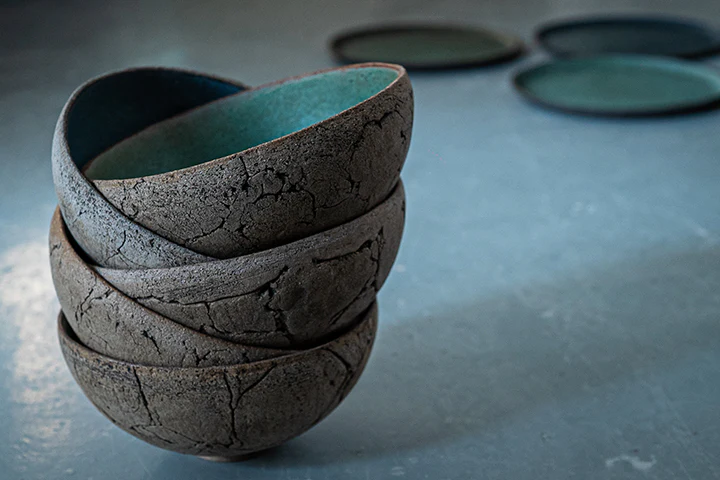 Il background di Maru Meleniou è radicato nell’arte e nel design. Ha studiato graphic design ad Atene e ha lavorato come designer presso uno studio di animazione e laboratori creativi. Il passaggio alla ceramica è nato dalla necessità di toccare effettivamente idee ed immagini e portarle all’esistenza tridimensionale. La solitudine, la natura ripetitiva e trasformativa del lavorare con l’argilla è un’esplorazione avvincente. Ha vissuto e lavorato in Giappone immergendosi nella natura grezza degli elementi e nell’apprezzamento della cerimonia nella vita di tutti i giorni. Un’esperienza che cambia la vita. Le sue opere sono dedicate all’arte di vivere, ispirata dall’ordinario, dall’essenziale e dall’interazione che abbiamo quotidianamente con gli oggetti. Come piccoli dettagli, gusti diversi influenzano i nostri stati d’animo e le nostre scelte. Attualmente collabora con chef progettando stoviglie esclusive per ristoranti.