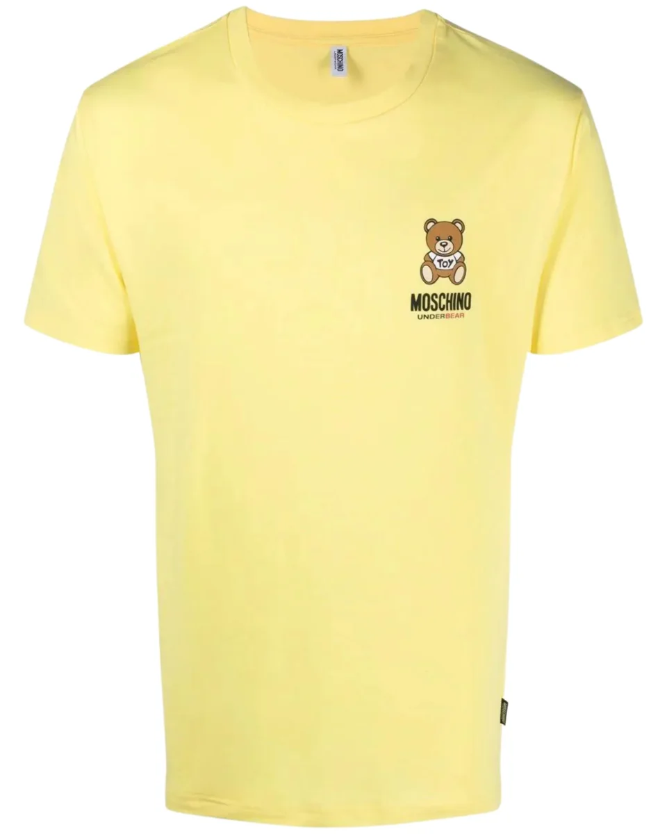 T-shirt con stampa Moschino design orsetto: maglietta intimo gialla, lavorazione in jersey, caratteristico motivo Teddy Bear, targhetta con logo, scollo rotondo, maniche corte e orlo dritto.