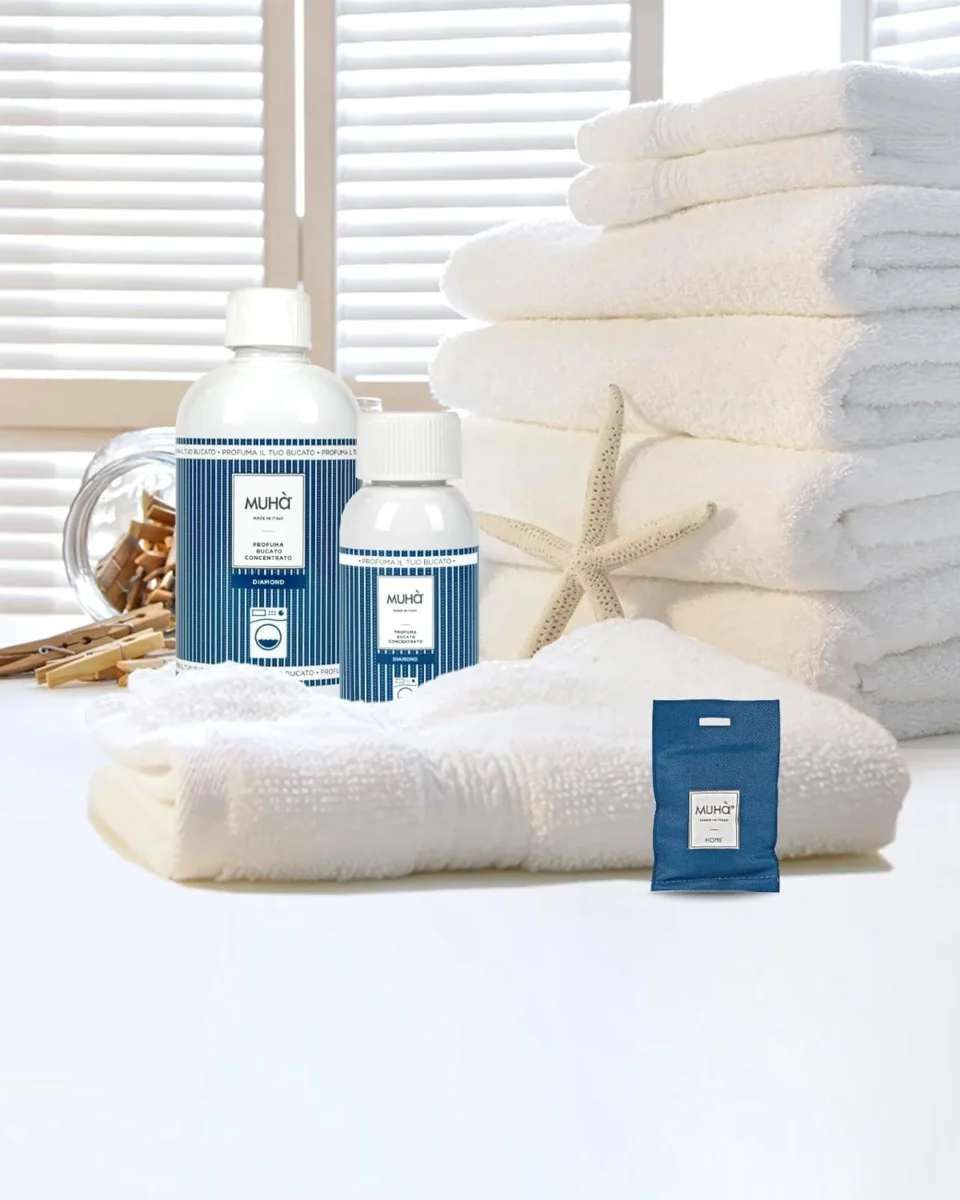 Il profuma Bucato Concentrato ideale per lavatrice o lavaggio a mano in formato da 400ml, appartiene alla linea Home; una linea che nasce dall’esigenza di ampliare l’offerta Muhà e creare un prodotto che permetta di “indossare” le fragranze.