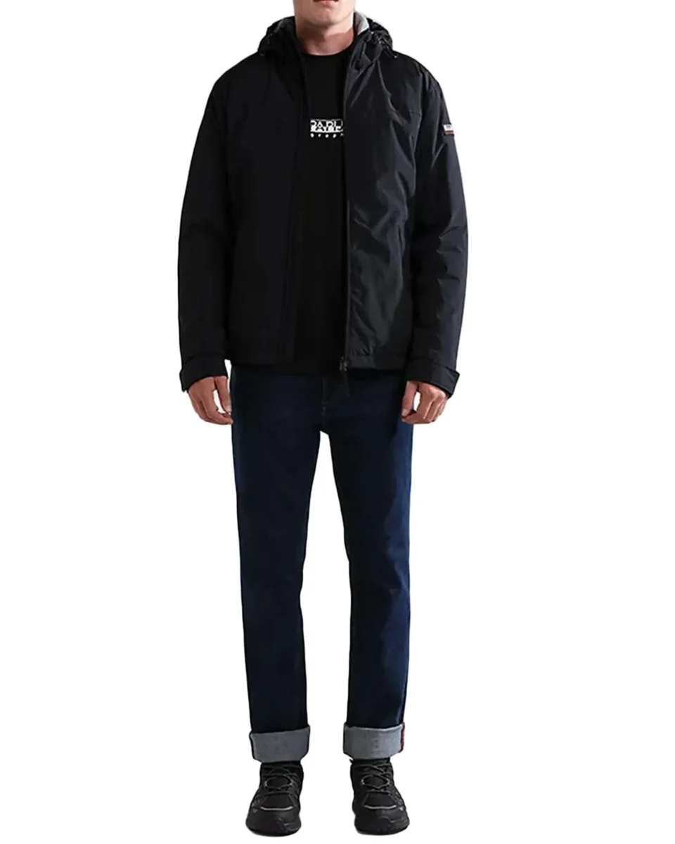 Giacca corta Napapijri Shelter Wint realizzata in tessuto tecnico, ideata per l’uomo, adatta a tutti; capospalla con rivestimento interno in morbido tessuto di pile che rende il capo caldo ed accogliente.