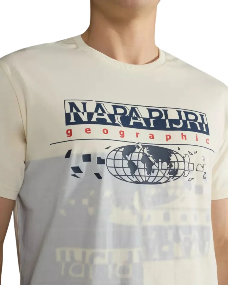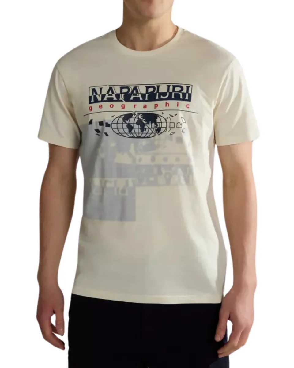 T-Shirt Napapijri girocollo Argus, ideata per l’uomo, realizzata in cotone, caratterizzata da una stampa con scritta Napapijri al centro del petto.