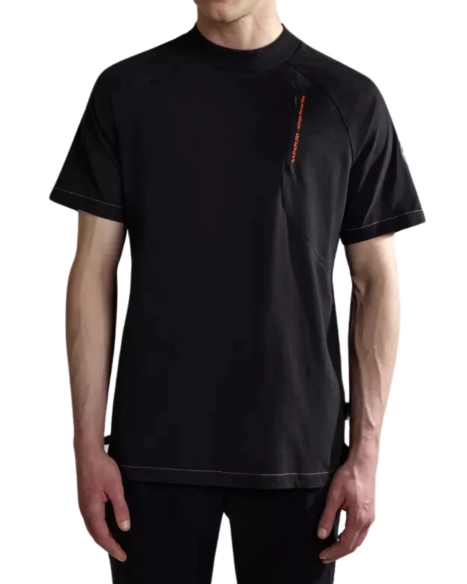T-Shirt Napapijri Weddell per uomo con maniche corte, girocollo stretto, logo verticale sul petto.