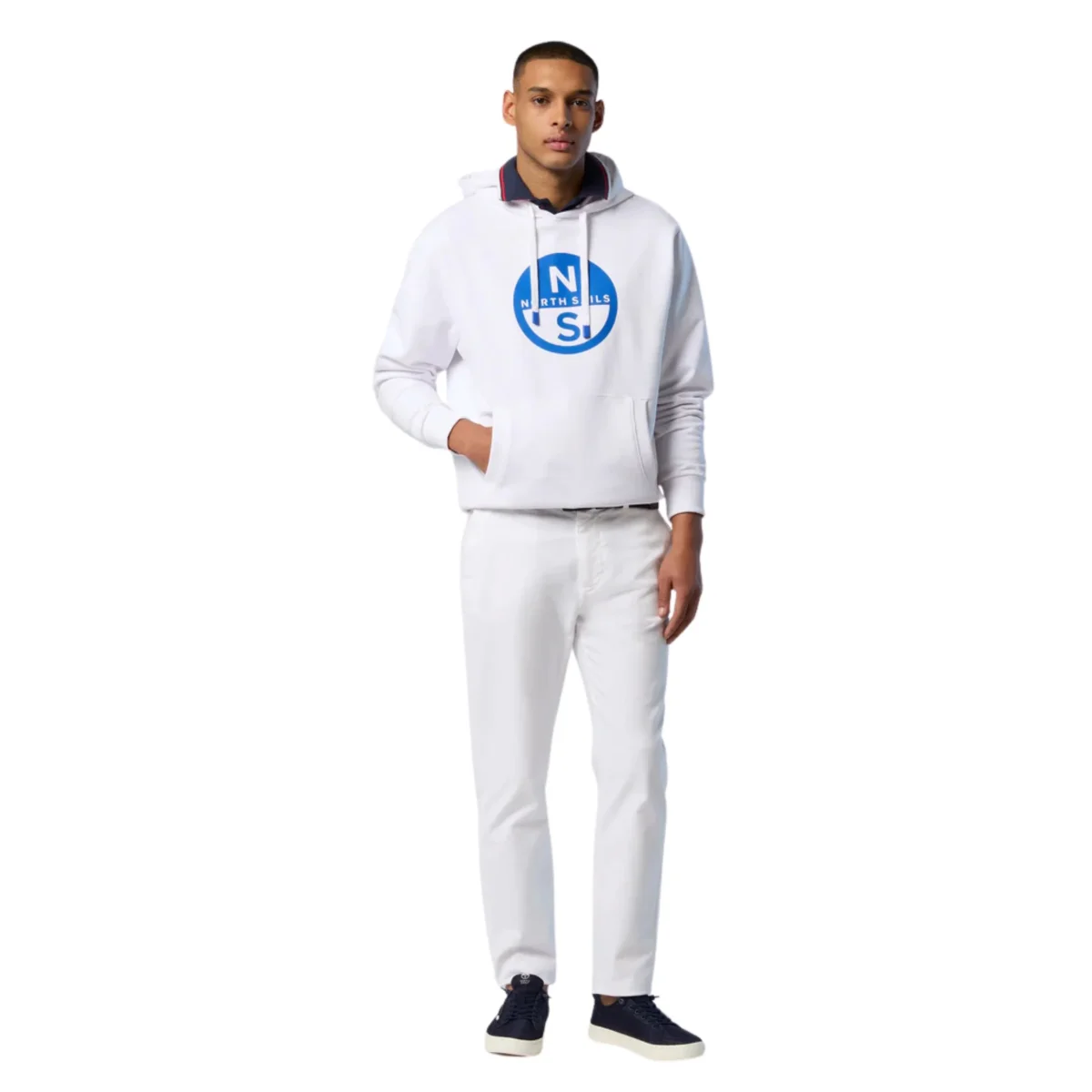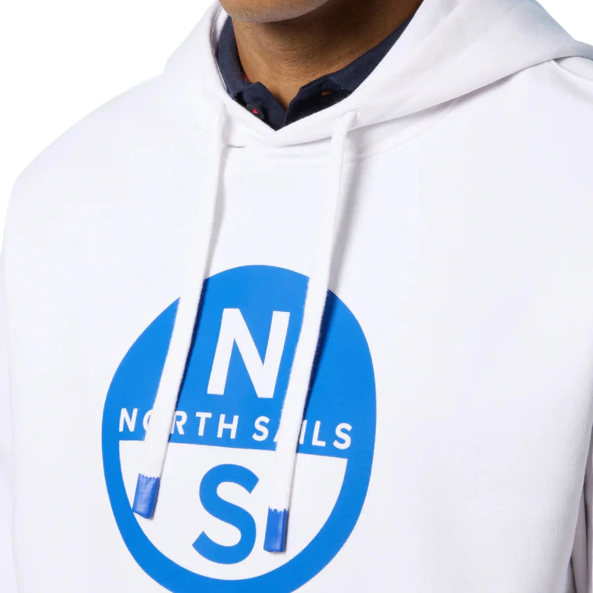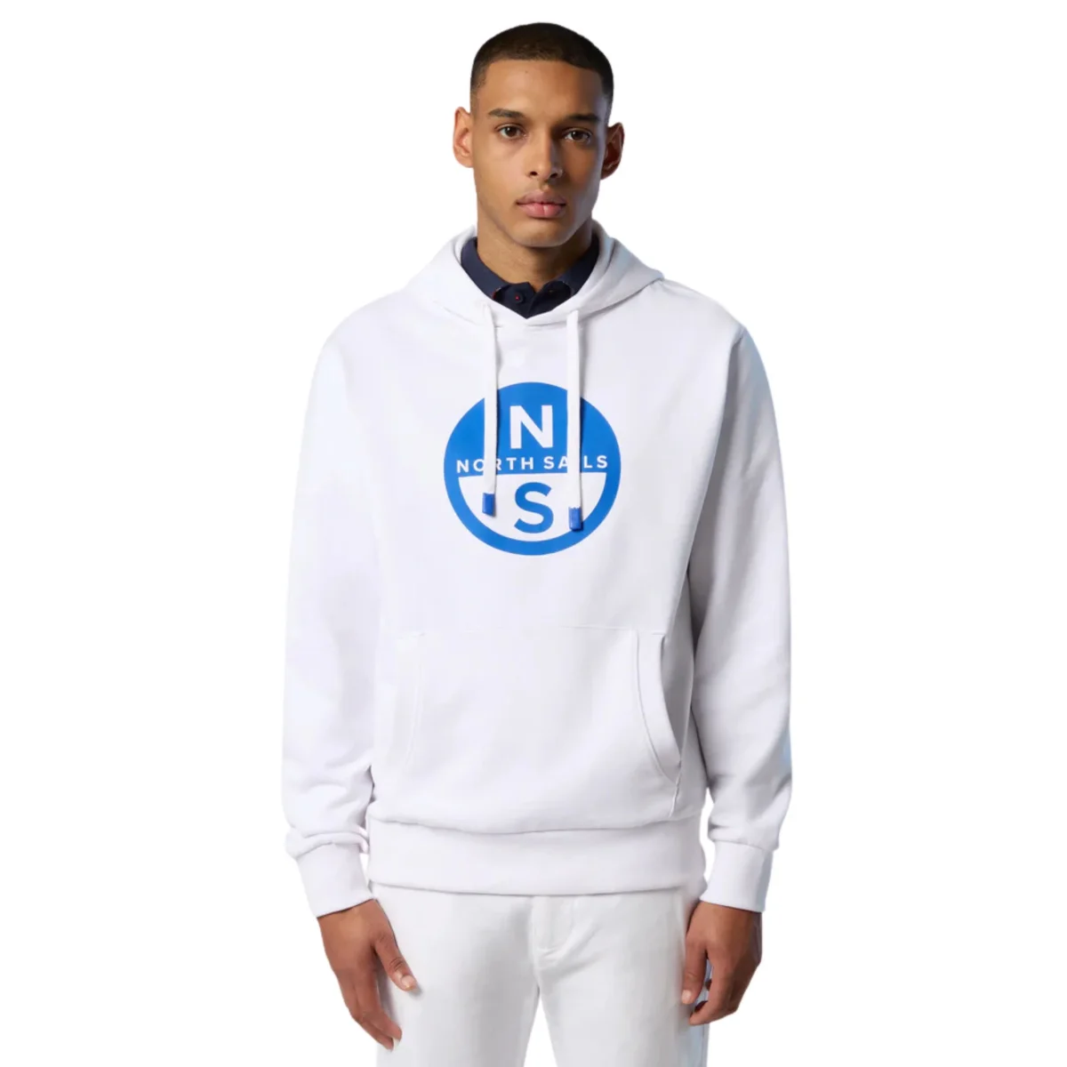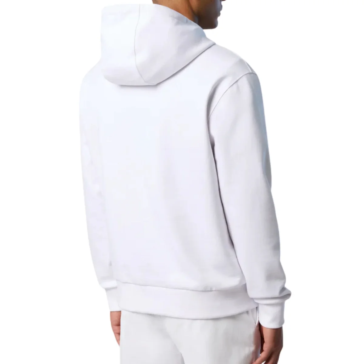 Felpa girocollo in cotone organico con stampa centrale del logo e cappuccio.