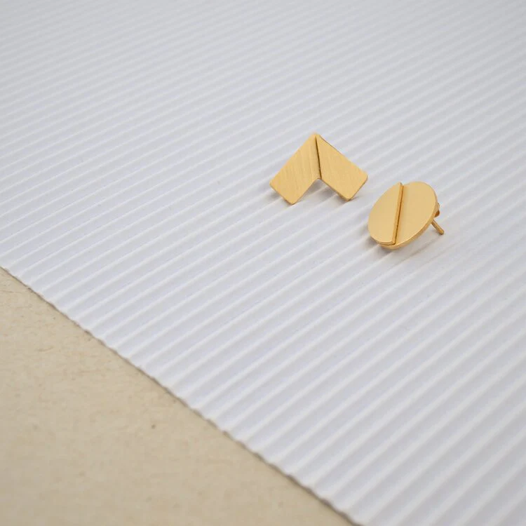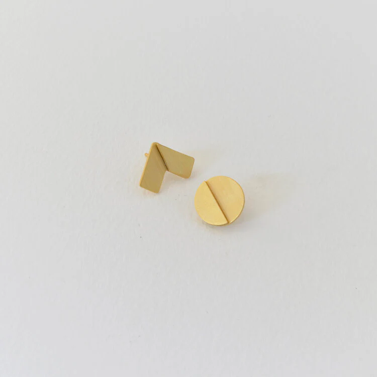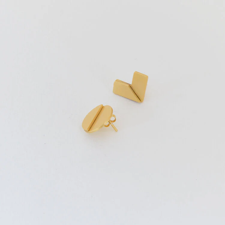 Questo set orecchini lobo fa parte della collezione EVOLVE. Sono fabbricati a mano in ottone placcato oro 18 carati con montanti e chiusure in argento 925 placcato oro. Puoi ordinare il tuoi nella combinazione di colori che preferisci!