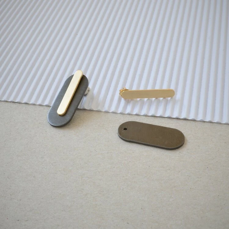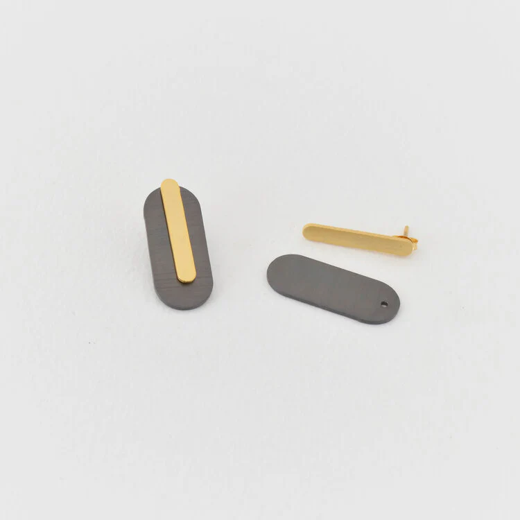 Questo paio di orecchini ear jacket sono fabbricati a mano in ottone placcato nero e oro 18 carati con montanti e chiusure in argento 925 placcato oro. Il modello di orecchini ear jacket è uno dei più trendy e originali del momento; la parte a ovale dell’orecchino può essere posizionata davanti o dietro a lobo. Si tratta di orecchini componibili che possono essere indossati con o senza la parte ovale. Puoi ordinare la combinazione di colori che preferisci per il tuo paio di orecchini personalizzati!