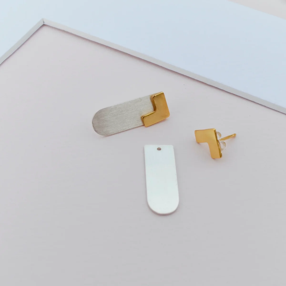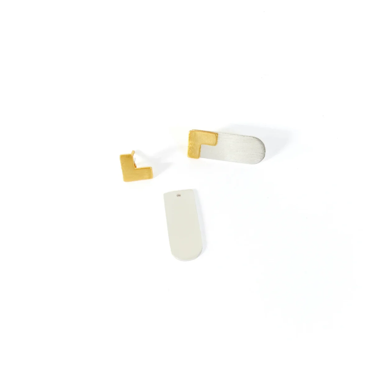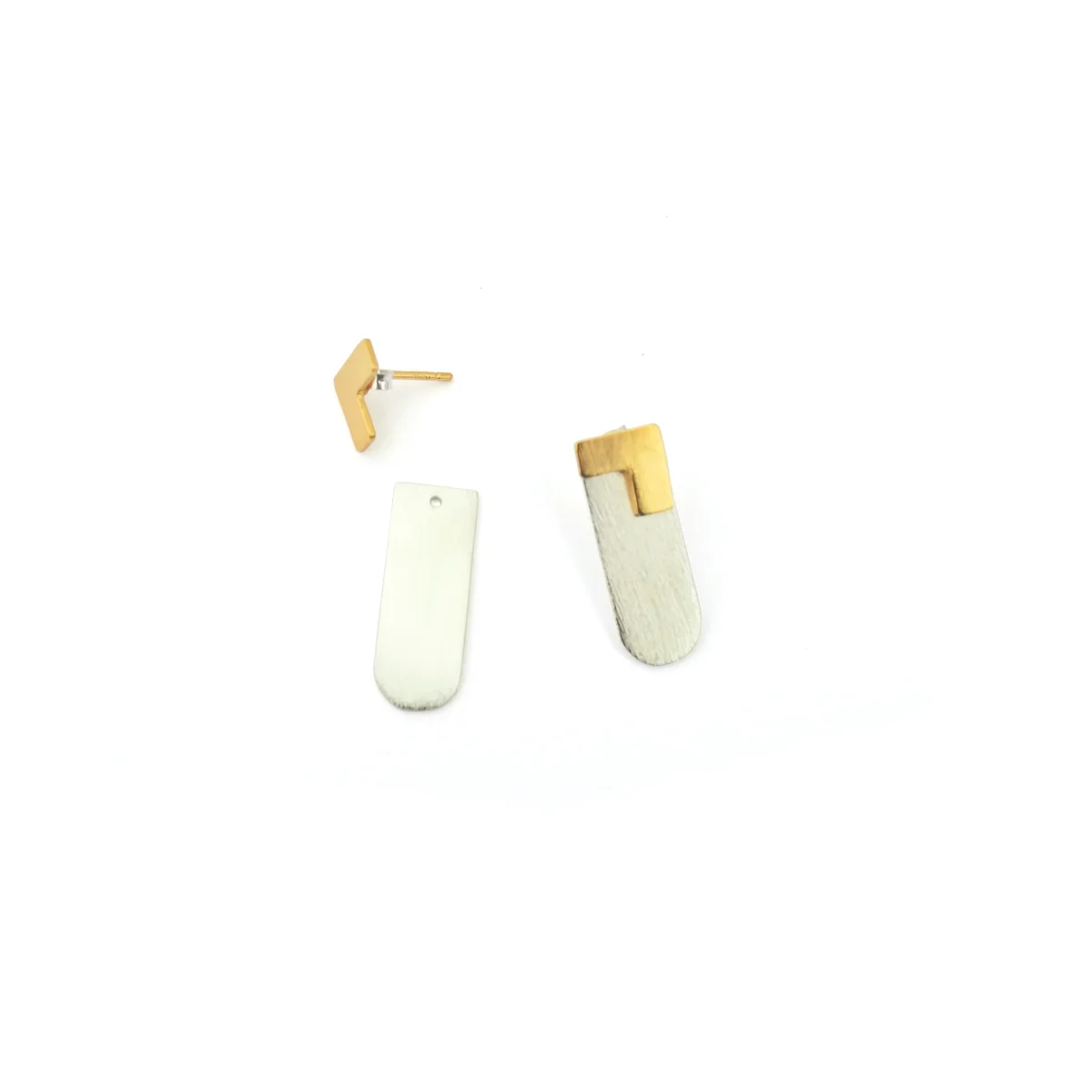 *Materiali: Ottone placcato oro e argento. Bottone dell’orecchino e chiusure in argento 925 placcato oro
