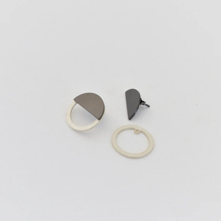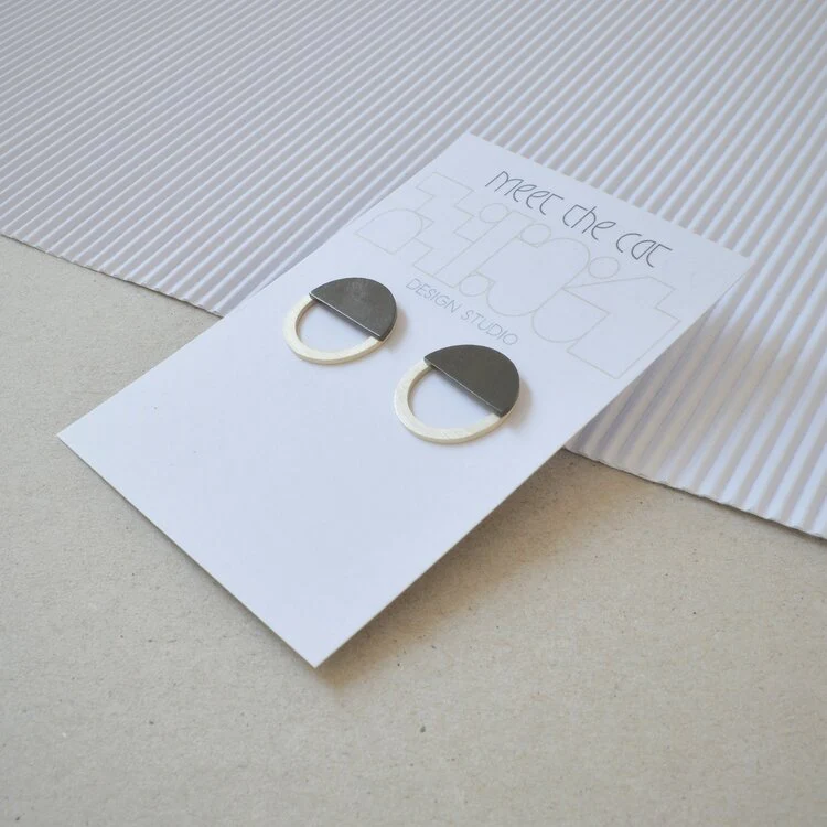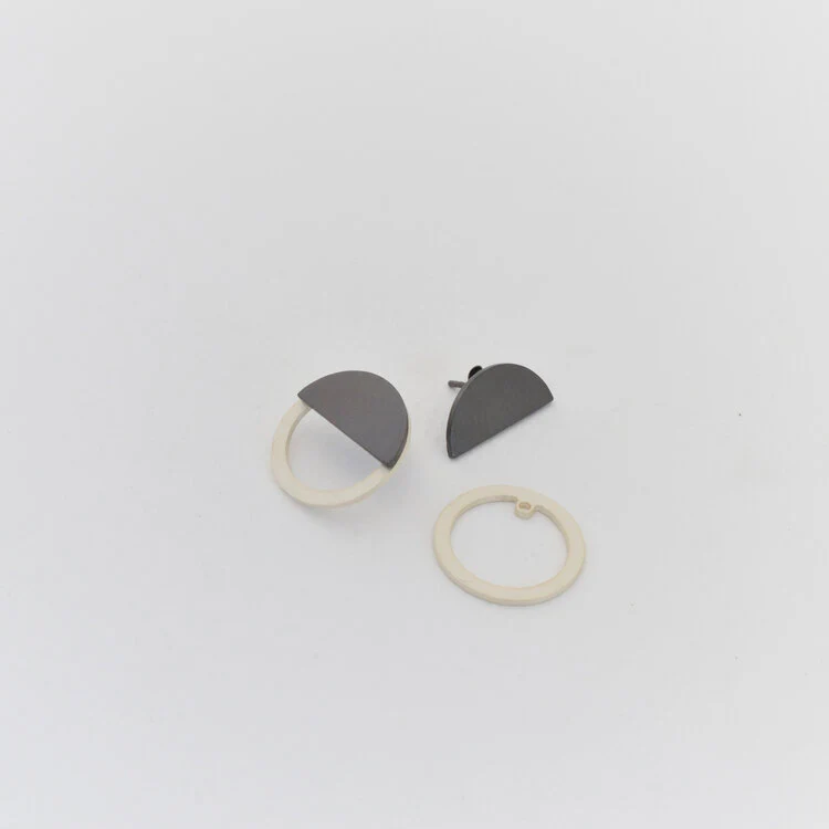 Questo paio di orecchini ear jacket sono fabbricati a mano con ottone placcato nero e argento con montanti e chiusure in argento 925 placcato nero. Il modello di orecchini ear jacket è uno dei più trendy e originali del momento; la parte a cerchio dell’orecchino può essere posizionata davanti o dietro a lobo, lasciando a vista sul lobo la mezzaluna e dietro la parte a cerchio. Si tratta di orecchini componibili che possono essere indossati con o senza la parte a cerchio. Puoi ordinare la combinazione di colori che preferisci per il tuo paio di orecchini personalizzati!