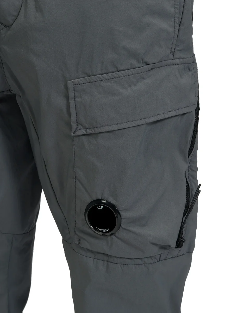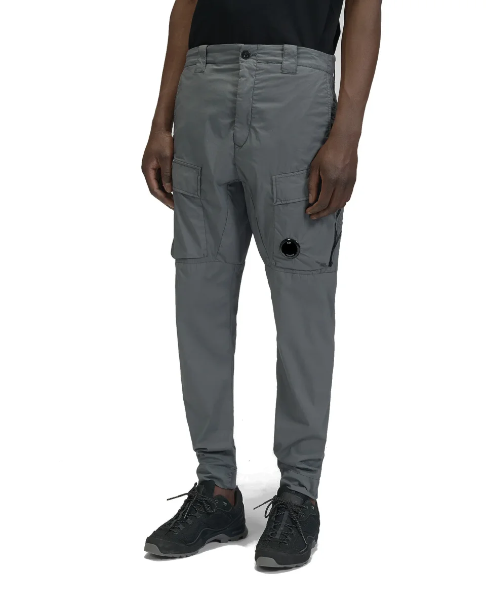 Questi pantaloni da uomo dal taglio affusolato presentano passanti per cintura rinforzati, discrete tasche anteriori, tasche modello cargo a doppia apertura sulle gambe ed esclusivo dettaglio C.P. Company Lens sulla gamba sinistra. Sono realizzati nella versione elasticizzata dell’esclusivo tessuto di cotone 50 Fili misto nylon di C.P. Company, per cui questo materiale già estremamente adattabile risulta ancora più flessibile e funzionale. La tintura in capo dona una maggiore profondità e intensità cromatica.