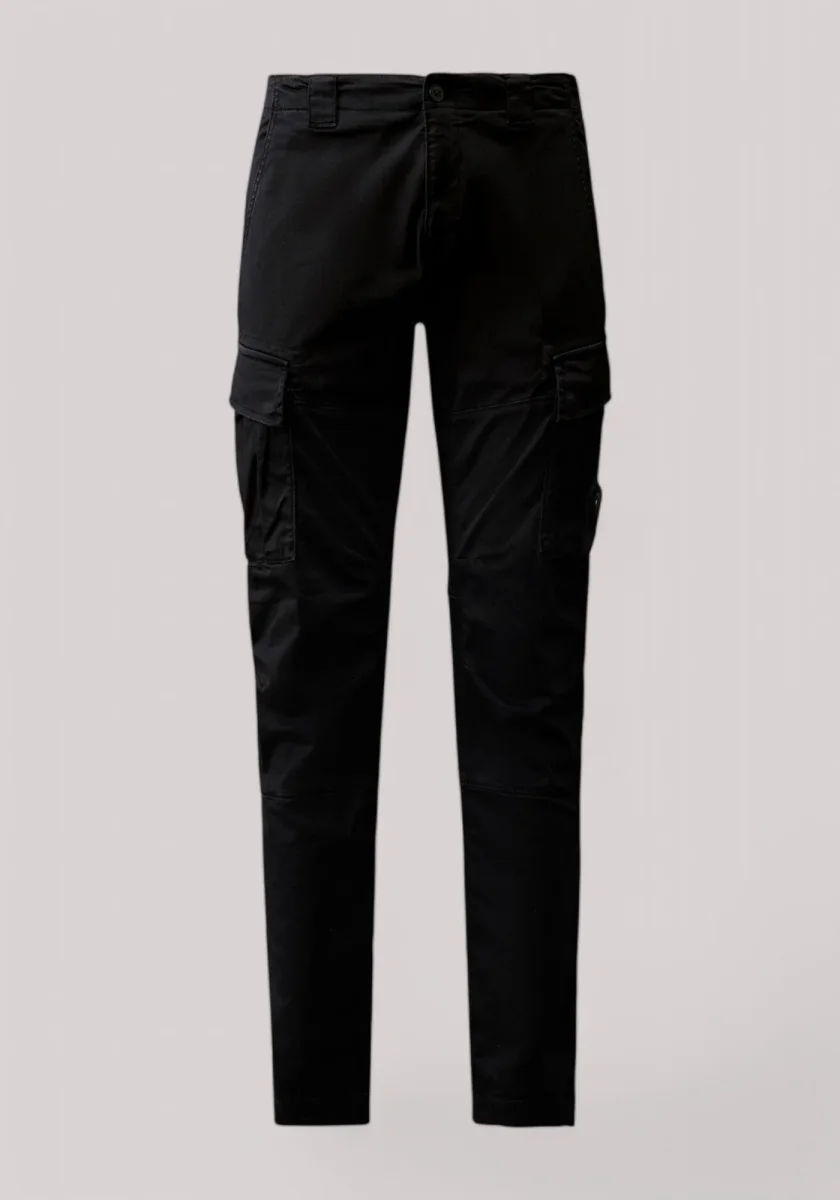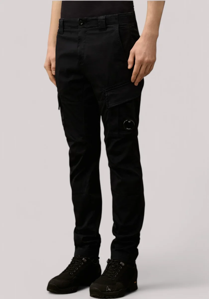 Pantalone cargo realizzati in raso di cotone stretch smerigliato, caratterizzati da Lente. Tinti in capo. Ergonomic fit.