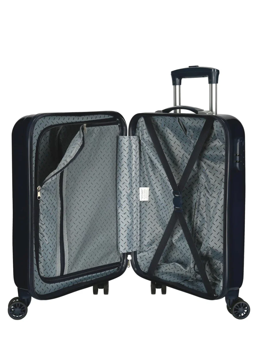 • Valigia da cabina 55 x 40 x 20 cm. Ha una capacità di 38,4 l e pesa 2,9 kg. Realizzato in ABS, un materiale rigido e leggero.