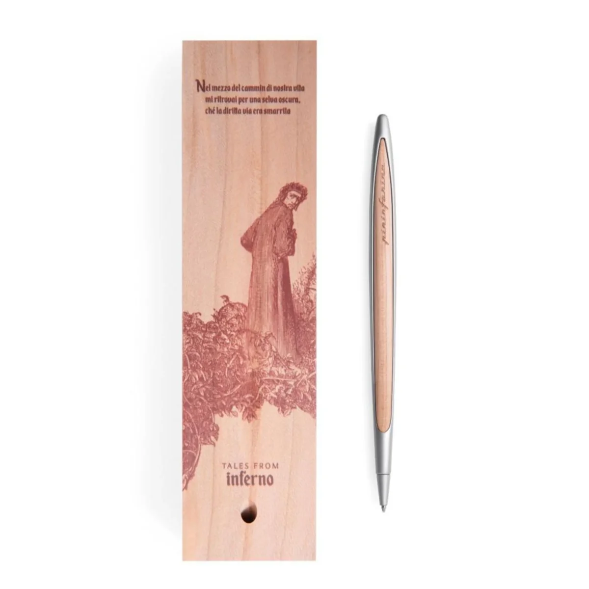 La selva oscura diventa il luogo simbolo in cui Dante si smarrisce, un’allegoria del peccato in cui ogni uomo può perdersi nel suo cammino durante questa vita. L’iconica Pininfarina Cambiano nella versione “Tales from Divina Commedia”, raffigura l’illustrazione della famosissima selva del disegnatore e litografo Gustave Dorè.