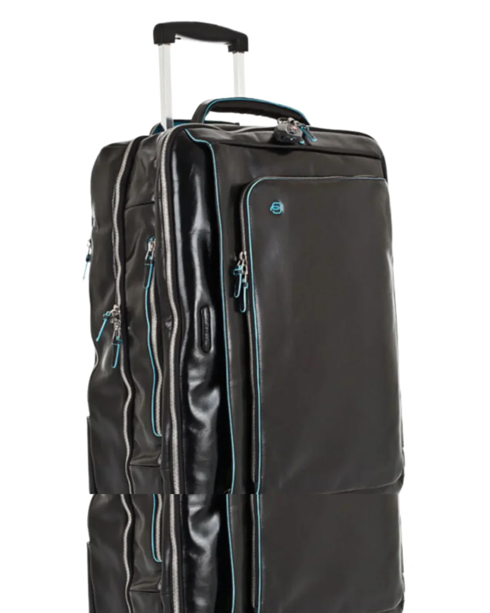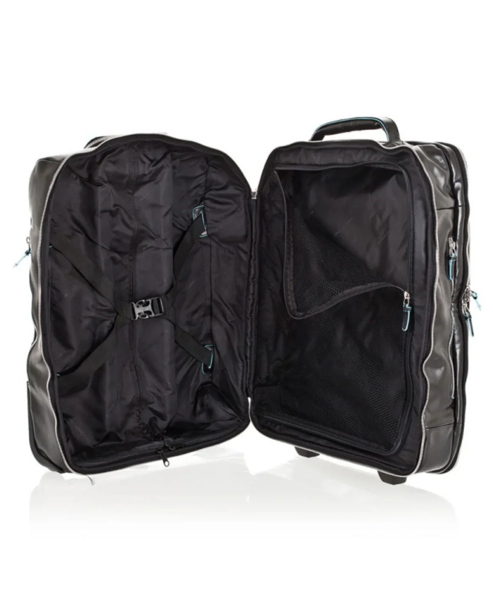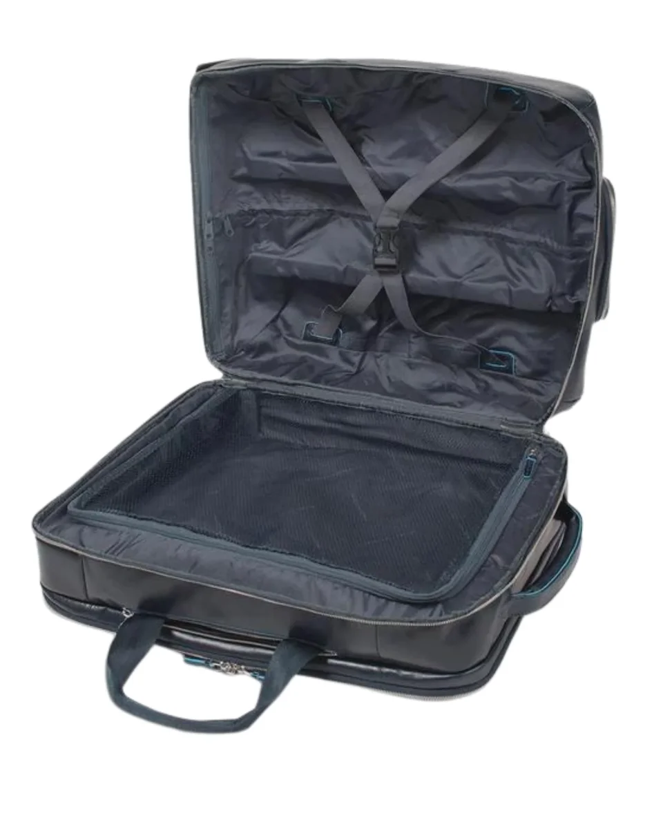 L’iconica collezione di Piquadro, contraddistinta dal riconoscibile bordo azzurro è totalmente realizzata in vitello e conciata secondo i metodi tradizionali, che mantengono la pelle bella e resistente, che con il passare del tempo assume quel fascino un po’ vissuto, che solo i prodotti di alto pregio sanno mantenere. Blue Square è una collezione completa che spazia dalla piccola pelletteria, al business, dalla borsa donna alla valigeria