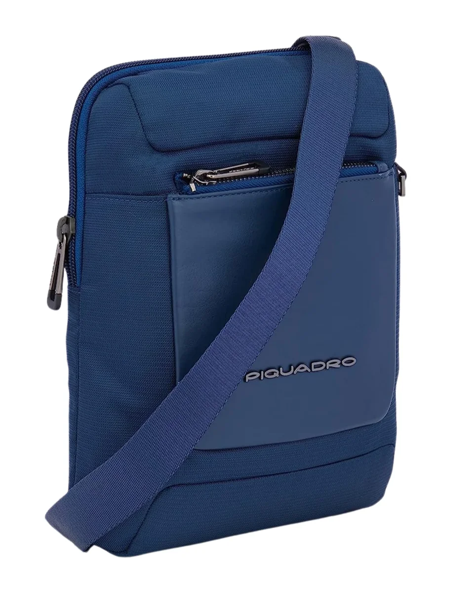 Borsello grande CA1816S115 Piquadro, realizzato in tessuto e pelle; ampio spazio centrale in grado di contenere un Ipad 11″.