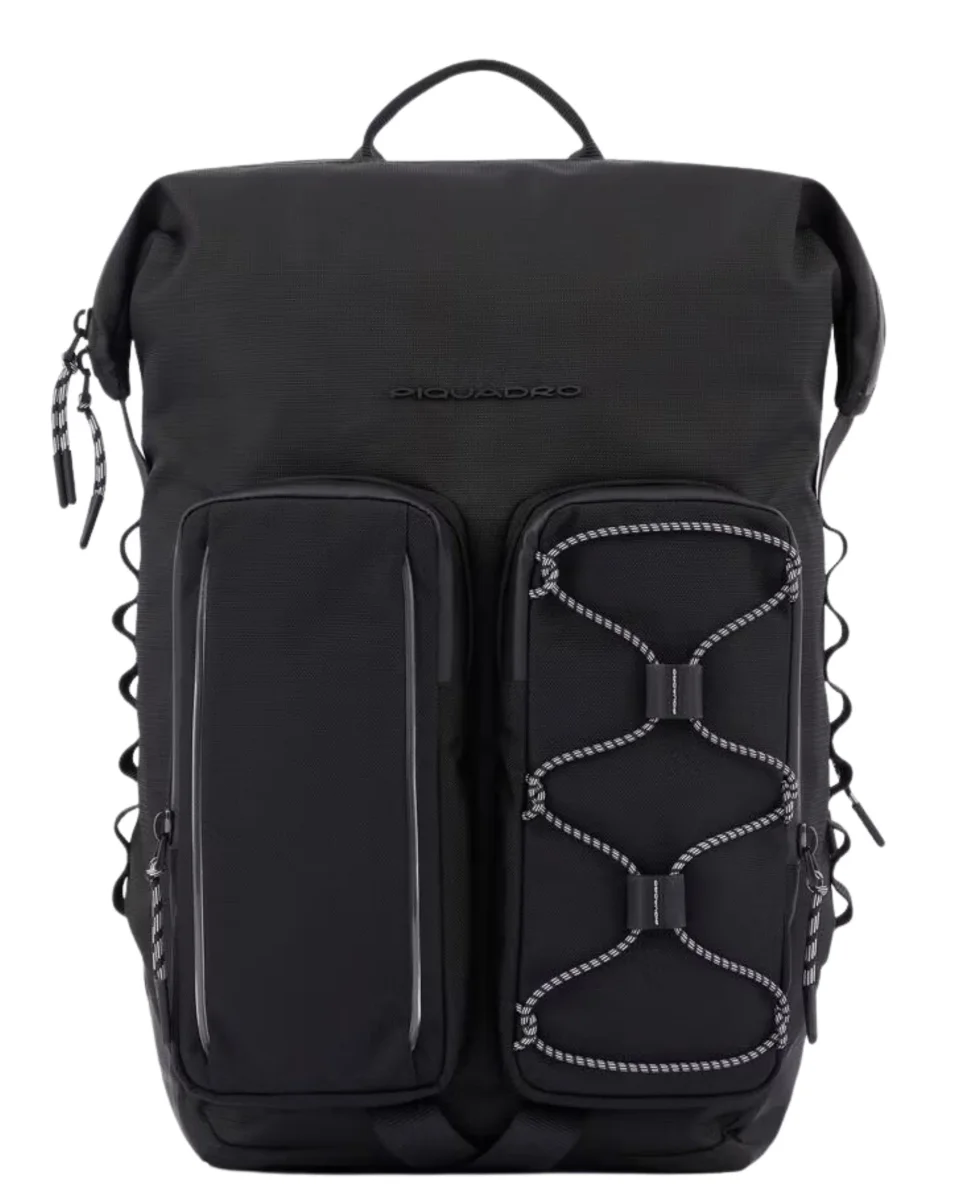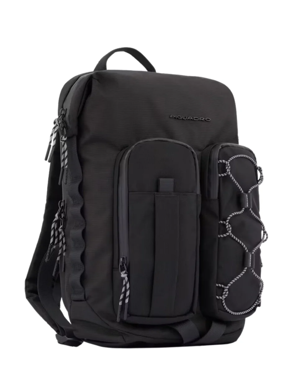 Zaino Mick by Piquadro, dotato di scomparto porta computer da 14″, realizzato in tessuto tecnico riciclato, con dettagli in poliestere.