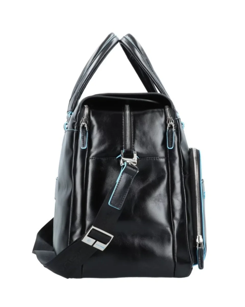 Elegante borsa da viaggio di Piquadro in robusta pelle dal design moderno e pulito. La borsa offre molto spazio e numerosi scomparti laterali per una visione d’insieme ottimale, tra cui uno scomparto imbottito per laptop e tablet e scomparti per smartphone, penne e altro. Con tracolla regolabile, zip e chiusura magnetica aggiuntiva. Ideale come borsa da viaggio o bagaglio a mano.