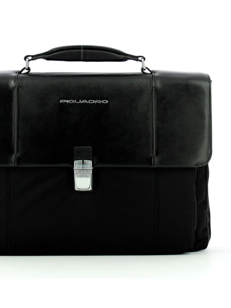 Cartella Porta PC Espandile 13.0 Link2 Piquadro, raffinato accessorio business realizzato in pelle e tessuto, con chiusura con patta, meccanismo ad incastro e comoda zip per espandere la cartella in larghezza. Pratico manichetto superiore imbottito e tracolla in tessuto, regolabile e removibile. Tasca esterna frontale, ampio comparto interno, foderato e ben organizzato, con sezione imbottita per notebook fino a 13″.