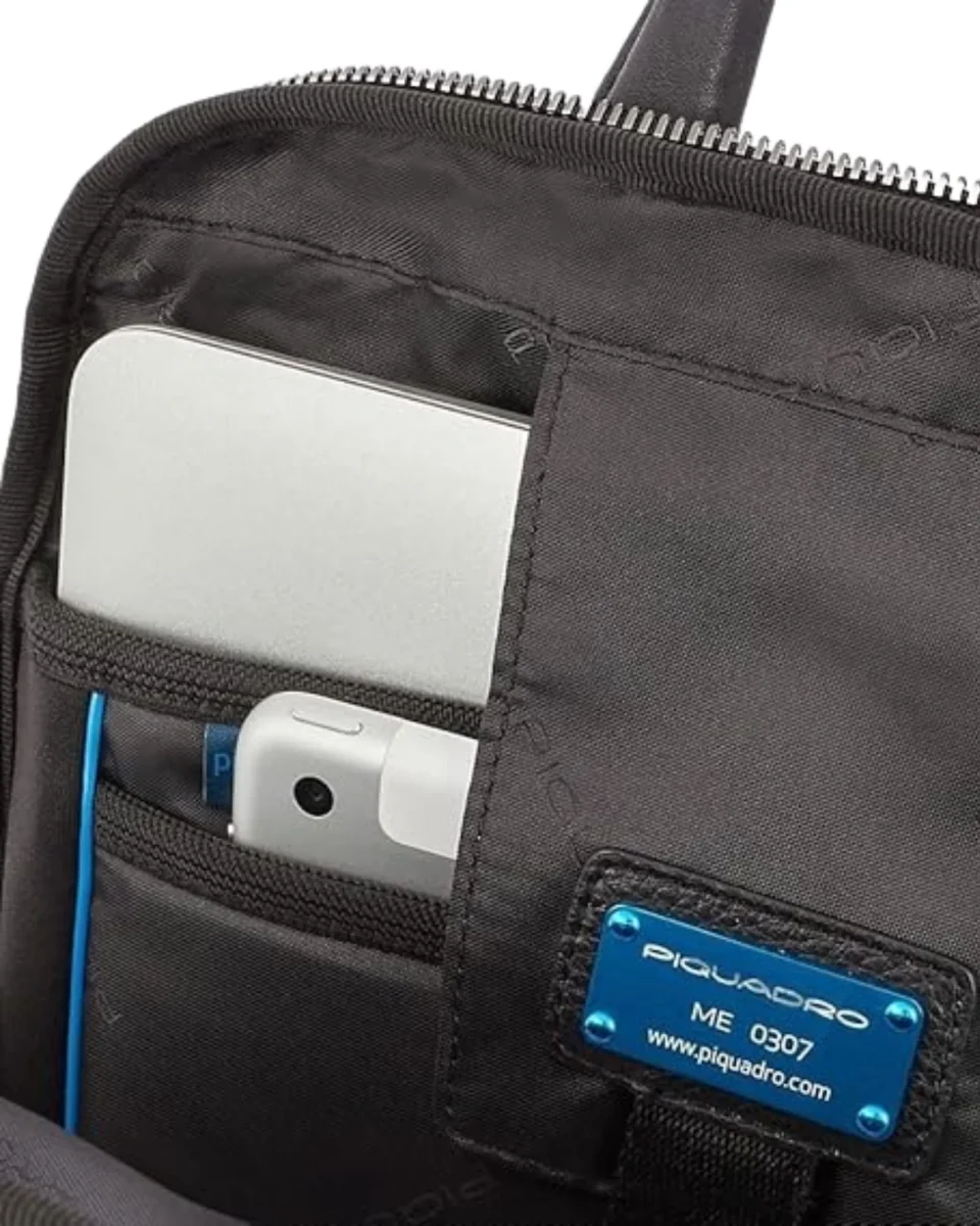Zaino Piquadro linea Ronnie, modello CA5884, ideale per la routine lavorativa da ufficio: accessorio da viaggio dall’aspetto compatto e squadrato, dotato di apertura con cerniera lampo bidirezionale.