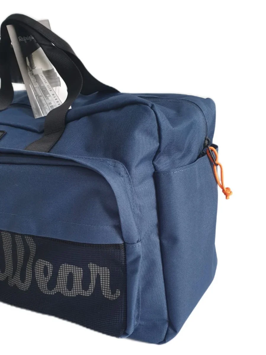doppia tasca + tasca interna, 2 tasche laterali con tracolla e manici per trasporto a mano.