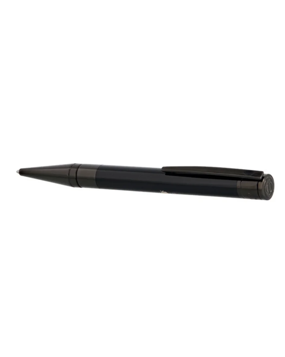 Penna a sfera D-Initial decorata con il motivo Memento Mori e finiture nere lucide.