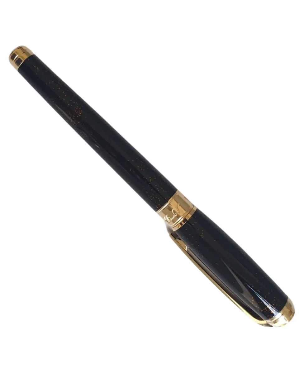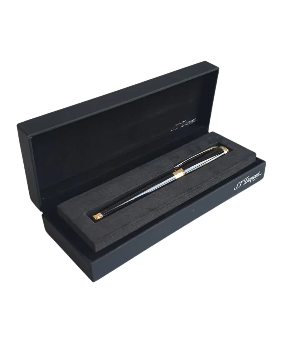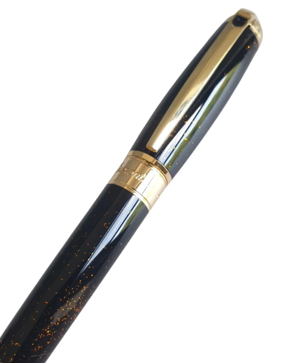 Penna stilografica ad inchiostro S.T. Dupont modello 410116LF, D line, progetto speciale in colorazione nero con polvere dorata.