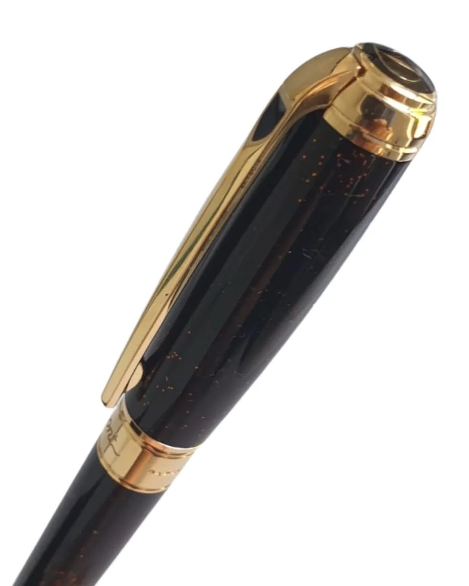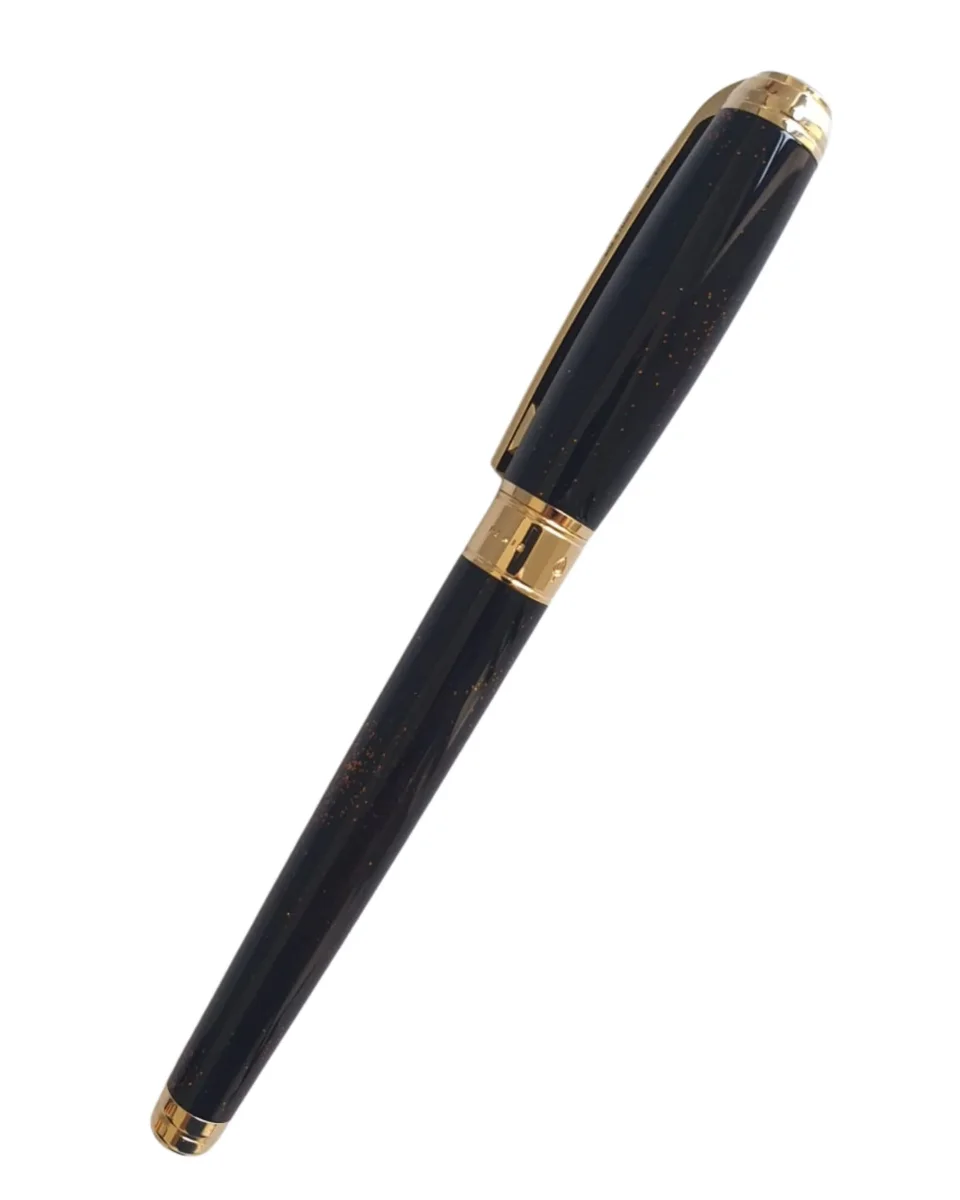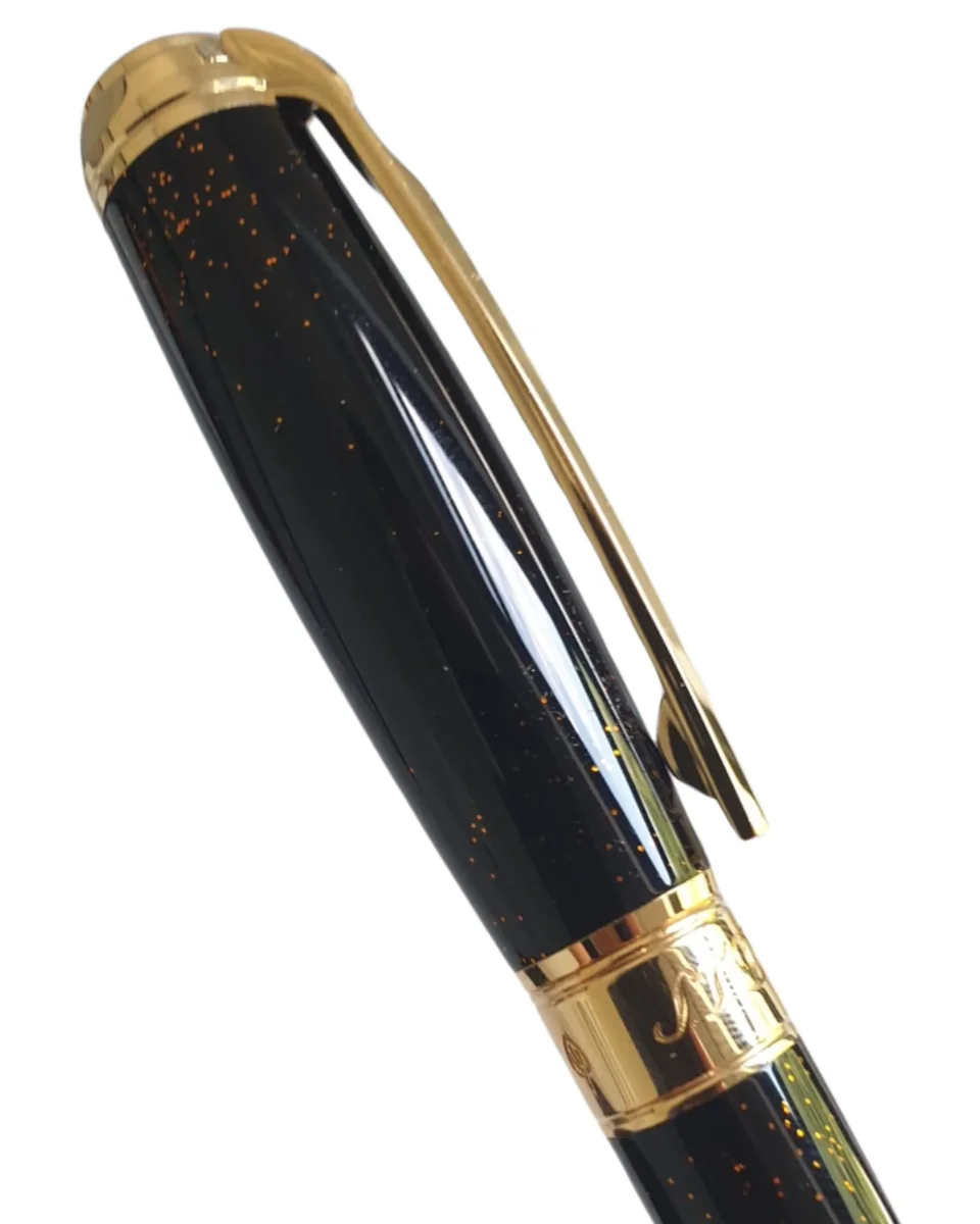 Penna stilografica ad inchiostro S.T. Dupont modello 410116LF, D line, progetto speciale in colorazione nero con polvere dorata.