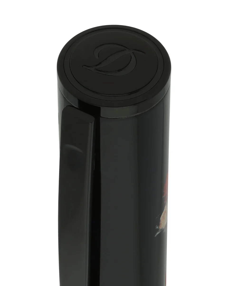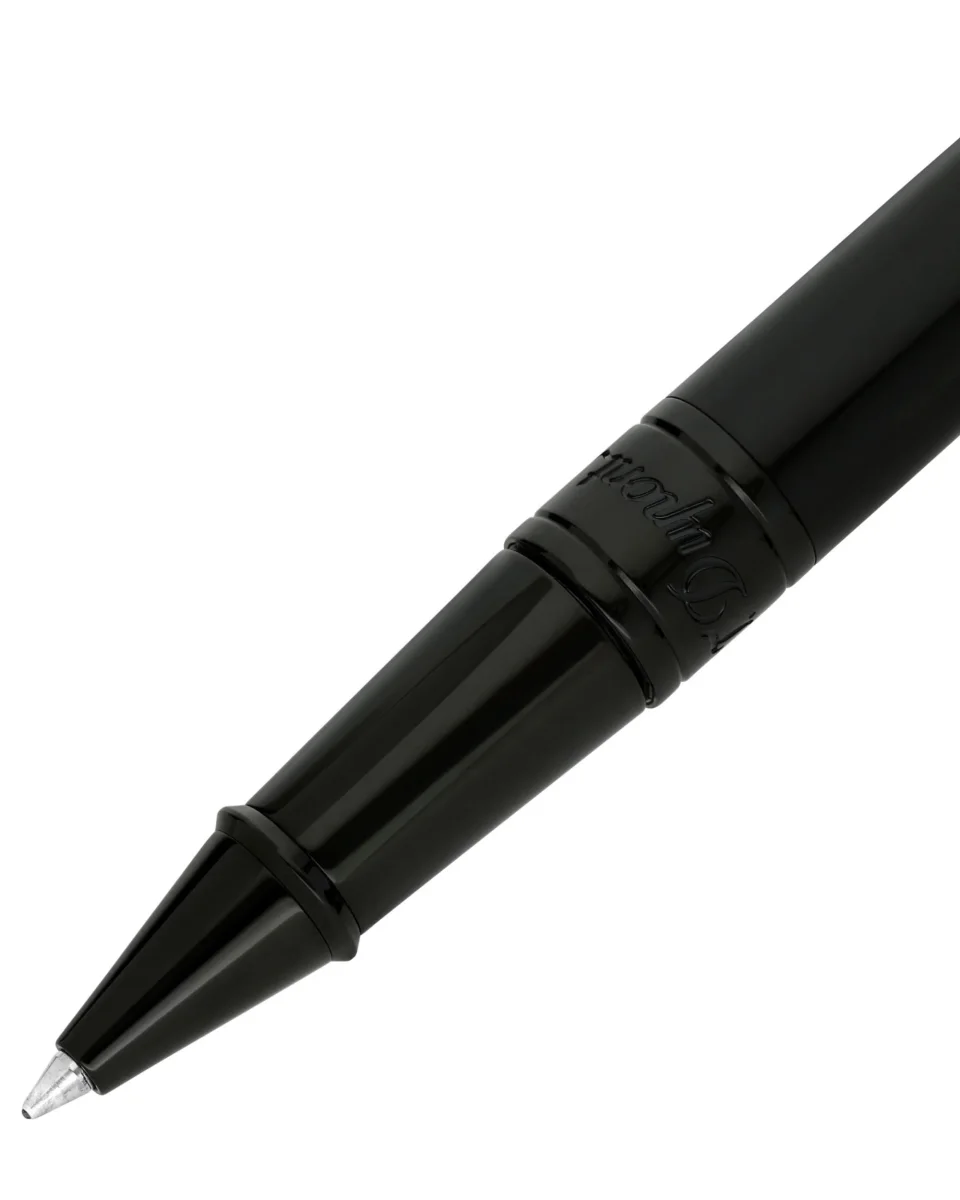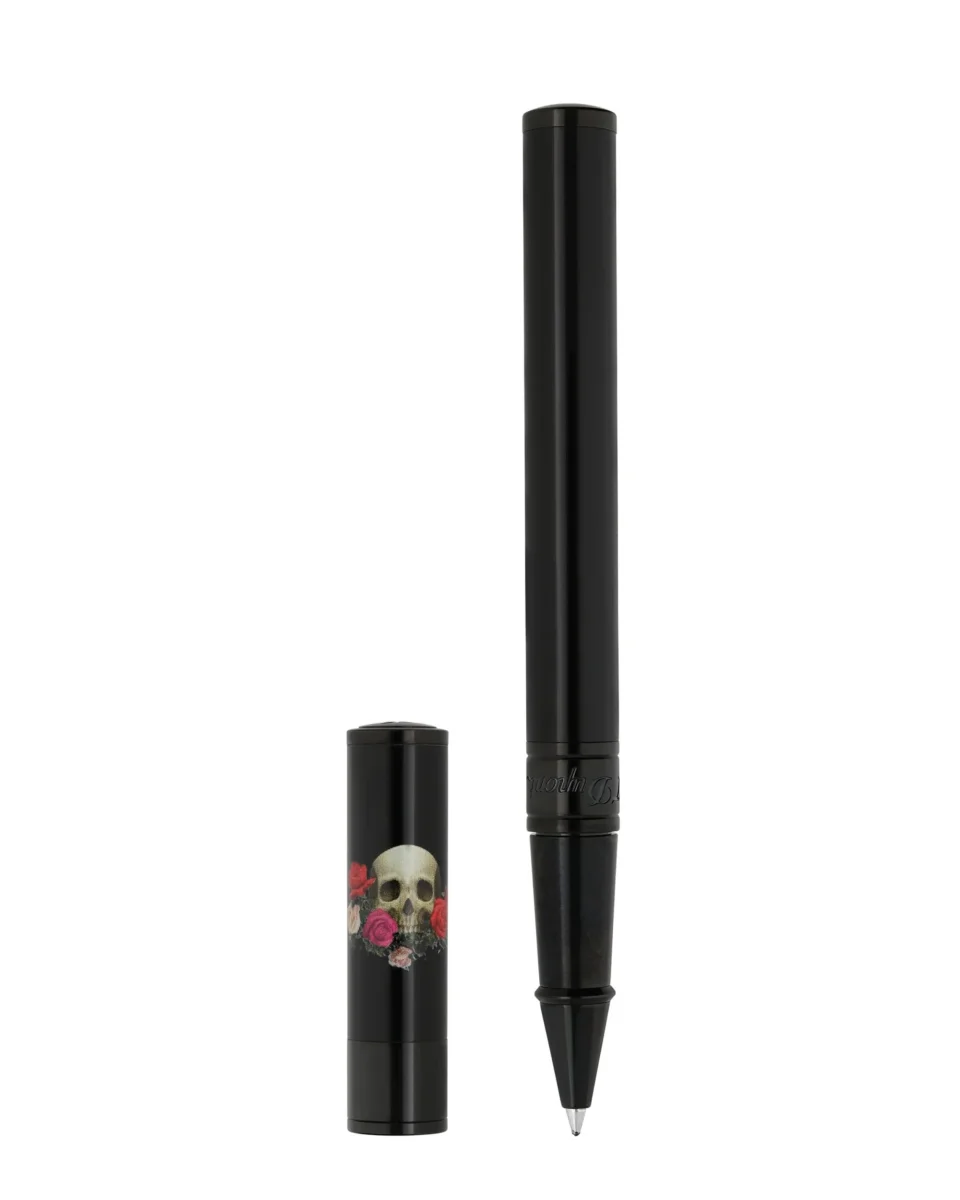 Penna roller D-Initial in laccato nero lucido con finiture nere lucide. Cappuccio decorato con il motivo Memento Mori.