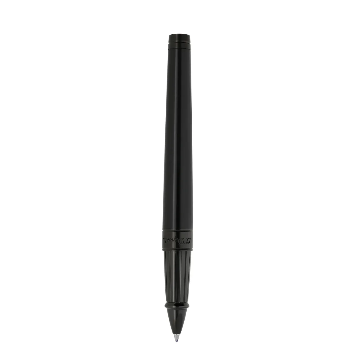 Grande penna a rotelle Line D Eternity in lacca nera lucida Dupont con finiture in nero satinato. Il cappuccio è decorato con il motivo Memento Mori. Prodotto nei nostri laboratori a Faverges, Francia. Ricariche associate: 040840 Blu – 040841 Nero.