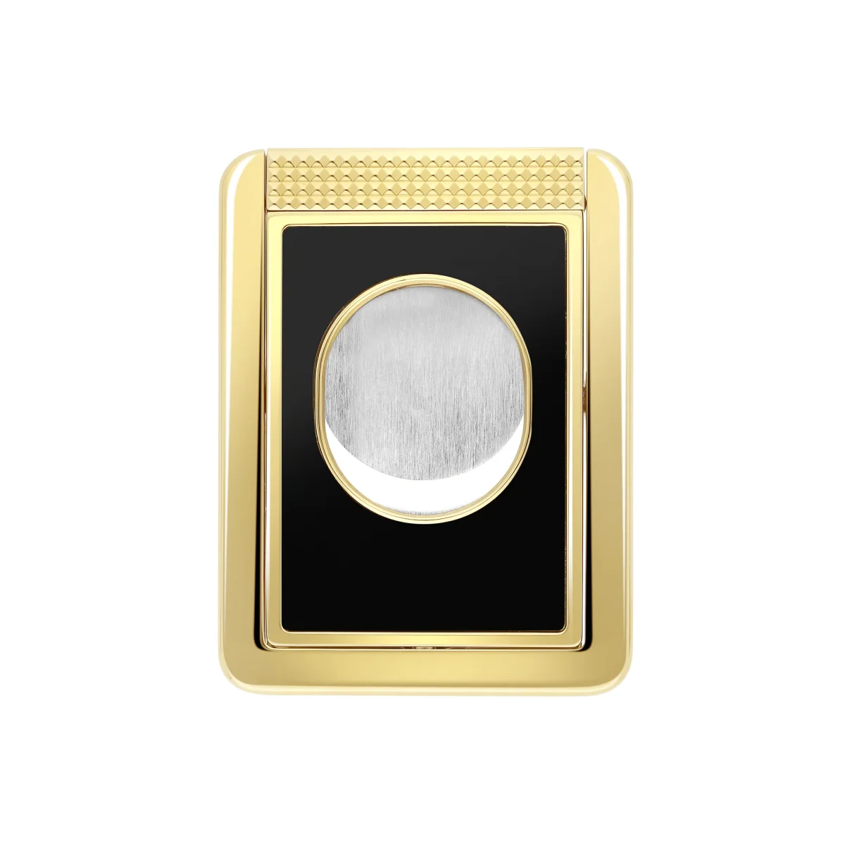 Tagliasigari Slim Perfect Cut, decorato in lacca nera e finitura oro. Diametro di 23 mm e profondità di taglio regolabile di 2,7 mm