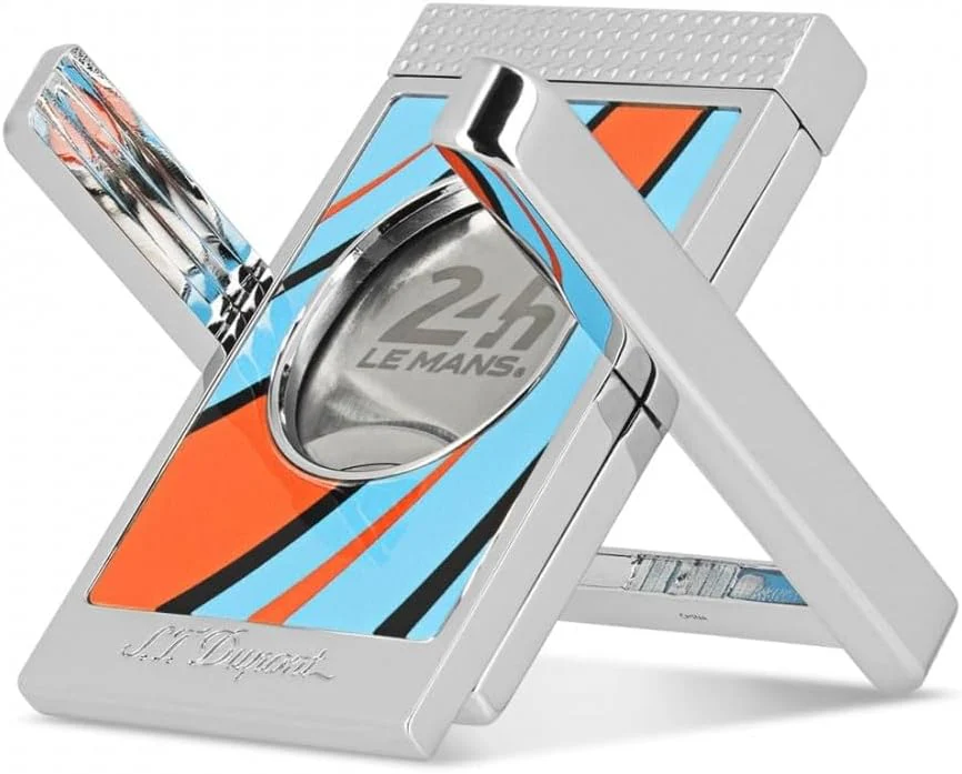 Il tagliasigari è realizzato con la massima cura dagli artigiani della Maison. Il logo della 24 Ore di Le Mans è stampigliato su un lato della lama, mentre l’altro lato reca un 8, numero portafortuna che in più ricorda il civico della prima sede storica di S.T. Dupont. La stampa a getto d’inchiostro crea sul prodotto dei tracciati in lacca dritti che rappresentano il movimento e la velocità, due elementi indissociabili dalla competizione motoristica. Questo articolo è proposto in un design che rimanda allo spirito sportivo e automobilistico ed è disponibile in tre colori.