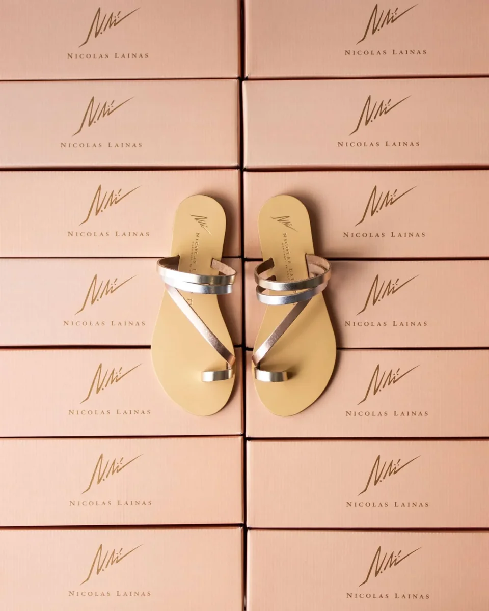I sandali di Nicolas Lainas hanno una tradizione tutta famigliare che inizia da una piccola e modesta bottega fondata a Plaka, Atene, nel 1952, che negli anni ha creato non solo un’eredità di famiglia ma anche un marchio che sarebbe stato accolto in tutto il mondo. Ogni generazione successiva ha assunto la guida della produzione e aggiunto il proprio tocco personale, ma alcune cose non sono mai cambiate. I sandali greci fatti a mano sono sempre realizzati con la migliore pelle greca e italiana. La qualità e il design sono sempre stati al primo posto piuttosto che l’ambizione a diventare una grande azienda con centinaia di dipendenti. L’azienda oggi è composta da cinque dipendenti che si considerano ancora una famiglia. La missione del marchio è quella di continuare a realizzare la miglior scelta di sandali greci fatti a mano che possano racchiudere la tradizione manifatturiera famigliare ed essere contemporaneamente al passo con la moda.