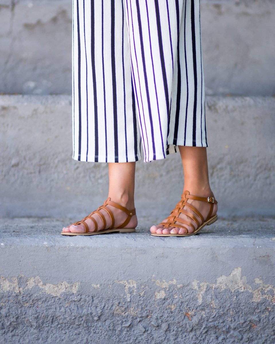 Sparta è il modello di sandalo più classico della nostra collezione Gladiator. Un design originale di sandalo greco che parte da Sparta e diventa virale nel resto dell’antica Grecia, seguito dall’impero romano e ridisegnato in molte varianti. Un paio di sandali in pelle vaccina molto comodi e facilissimi da indossare per i giorni più caldi dell’estate. Questi sandali bassi in cuoio sono realizzati a mano con la qualità di una delle migliori tradizioni manifatturiere in Grecia. Pratici da indossare e contraddistinti da un’eleganza semplice e di classe, saranno un accessorio di grande raffinatezza del tuo guardaroba. Il modello di questi sandali greci in cuoio prende il nome dall’antica città di Sparta, e ne racchiude l’essenza nel disegno lineare. Disponibili in 5 varianti, scegli quella più adatta al tuo stile e indossali per portare sempre con te un pezzo di Grecia autentica, per completare outfit casual ma anche per look più ricercati e sofisticati.
