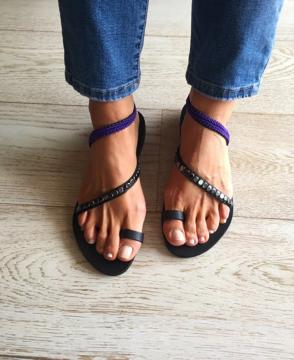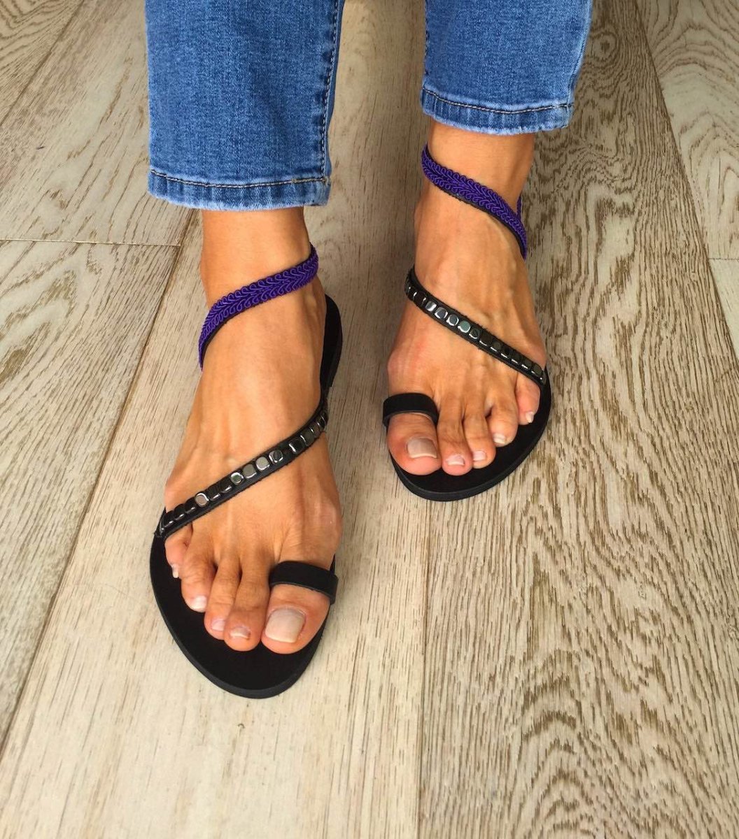 I sandali Ikaria riflettono la semplicità e l’eleganza di uno spirito libero, proprio come l’isola di Ikaria! I sottili cinturini sono decorati con pietre semipreziose di ematite color argento/nero/oro e un esclusivo rivestimento in tessuto intrecciato viola. I sandali greci da donna Ikaria sono unici per la loro vestibilità casual, indossali con un semplice abito lungo boho, o i tuoi jeans. Tutti i sandali Monimou sono realizzati a mano con materiali di qualità con tanto amore e rispetto per il cliente. Ecco perché sono così unici! I sandali sono realizzati in vera pelle greca da artigiani esperti che utilizzano tecniche tradizionali. Tutti i materiali sono cuciti a mano sui sandali in pelle, quindi possiamo garantirne la stabilità e la qualità .