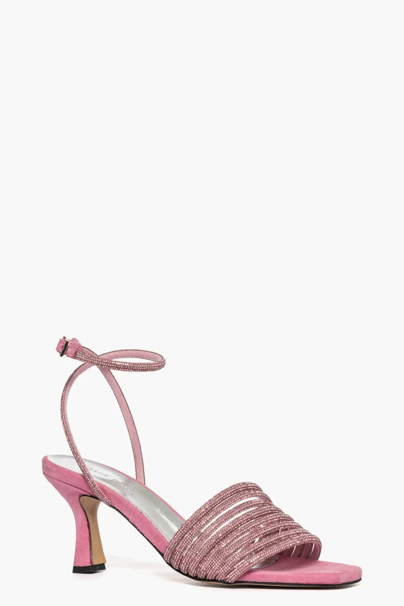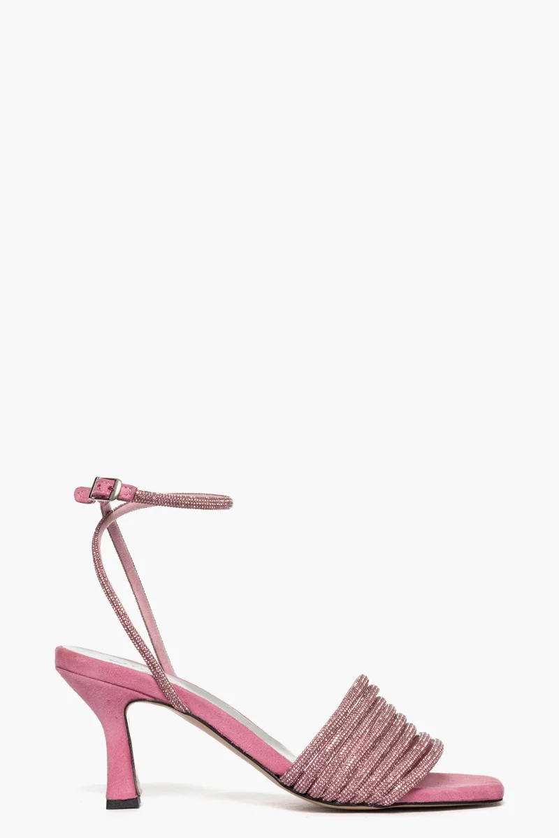 Sandalo 2965 camoscio rosa e strass rosa
