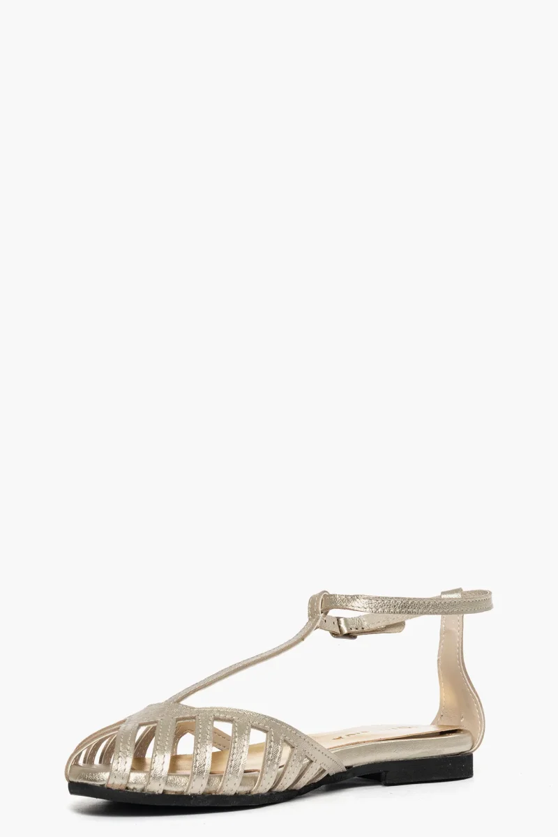Sandalo pelle oro, interni in similpelle, con cinturino alla caviglia, fibbietta nel colore oro, soletta interna in pelle. Calzano regolari. Calzature artigianali, made in Italy.