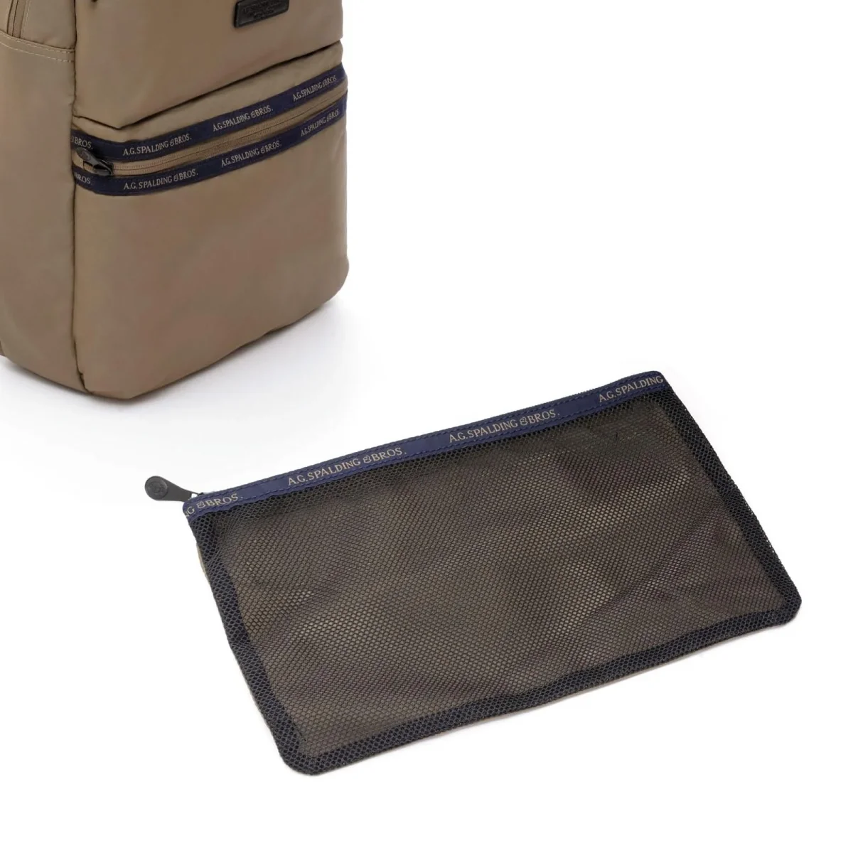 2 tasche esterne chiuse con zip. con logo A.G.Spalding&Bros. cucito vicino alla cerniera.